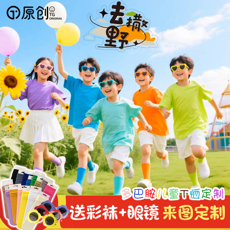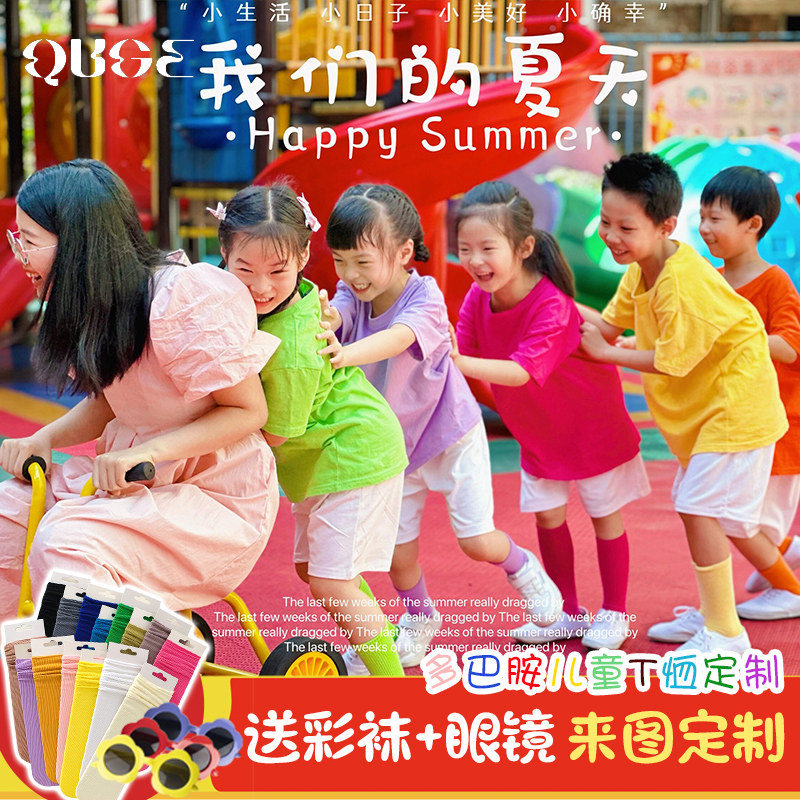 六一儿童节糖果纯棉短袖t恤彩色幼儿园小学生班服男女亲子装定制