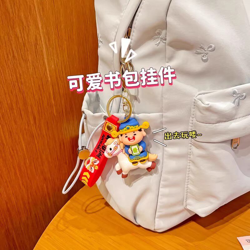 2026儿童吉祥物小财神挂件小玩具本命年马上发财合金创意书包
