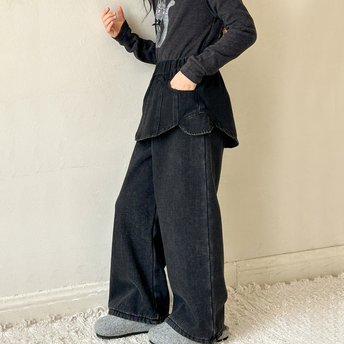 女童加绒牛仔裤子2026秋冬新款儿童一体绒休闲裤女大童冬季直筒裤