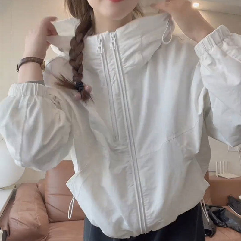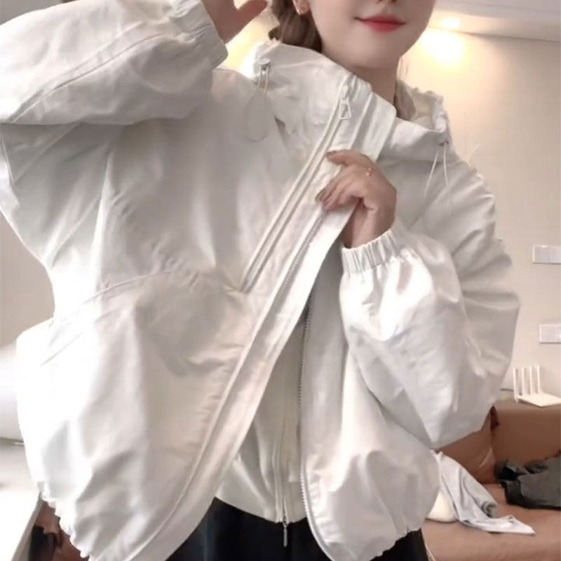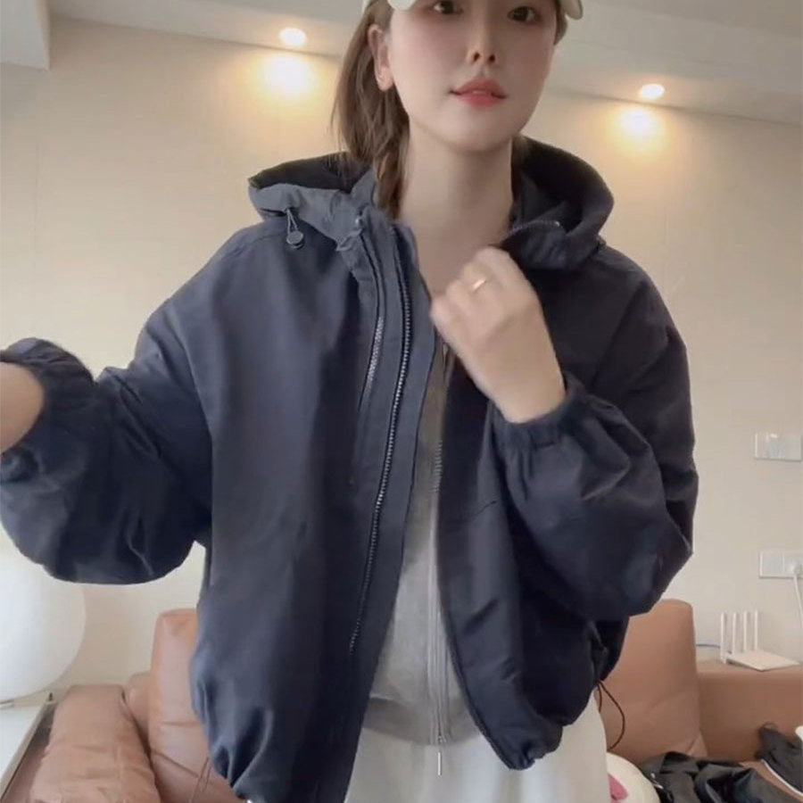 早春季新款冲锋衣女款双拉链短夹克连帽外套休闲百搭上衣ins潮款