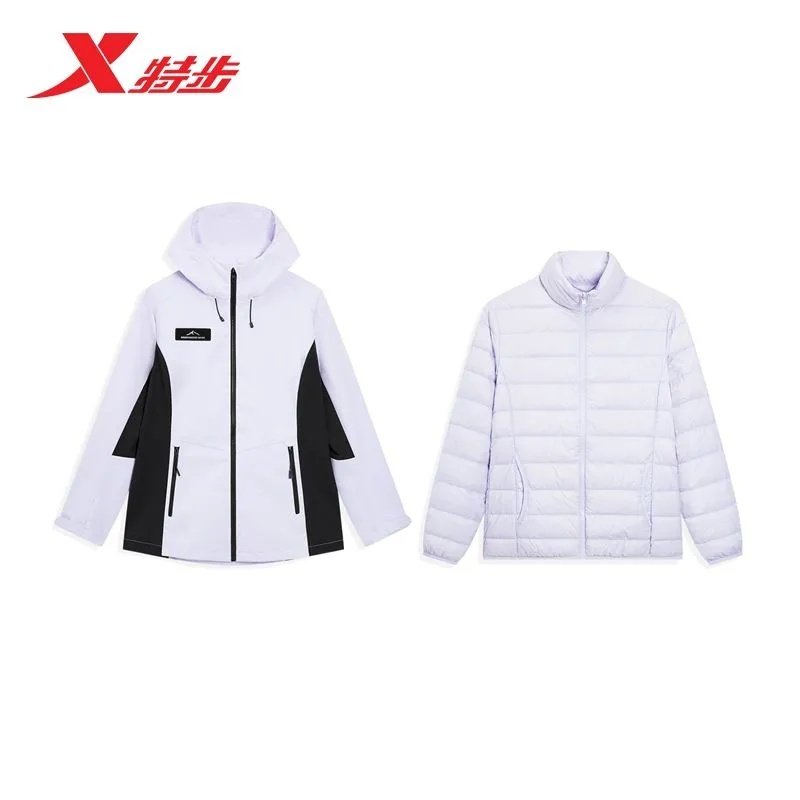 特步三防冲锋衣女款2025秋冬季新款正品户外运动外套双层风衣薄绒