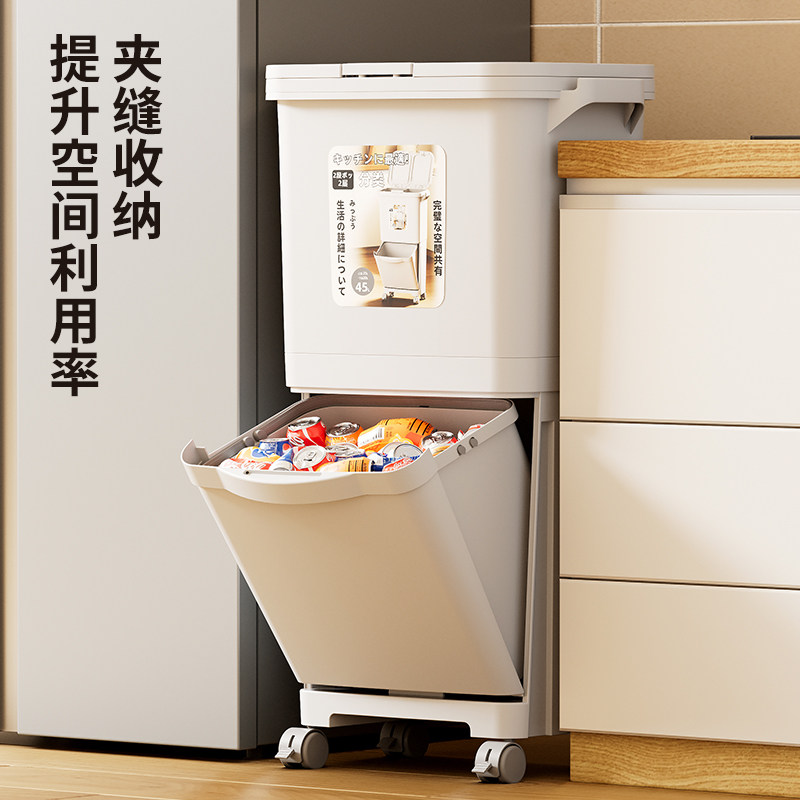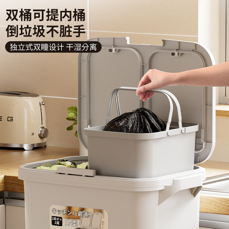 311线报网描述:干湿分离垃圾桶,大容量双层,免弯腰,带轮