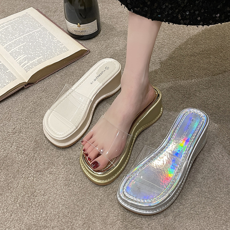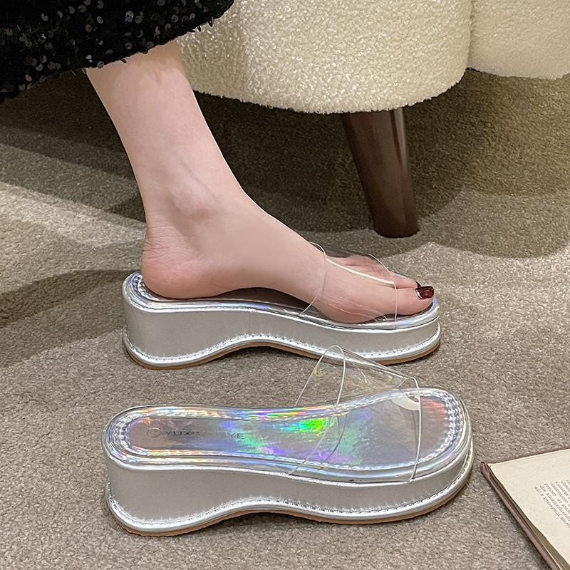2026夏季新款透明带一字拖鞋女外穿时尚厚底度假风休闲百搭凉拖鞋