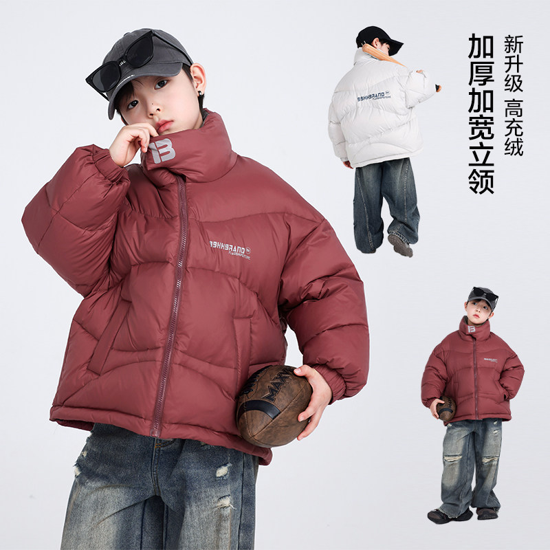 男童冬季红色过年短款羽绒服2026新款儿童男孩冬装防风免洗厚外套
