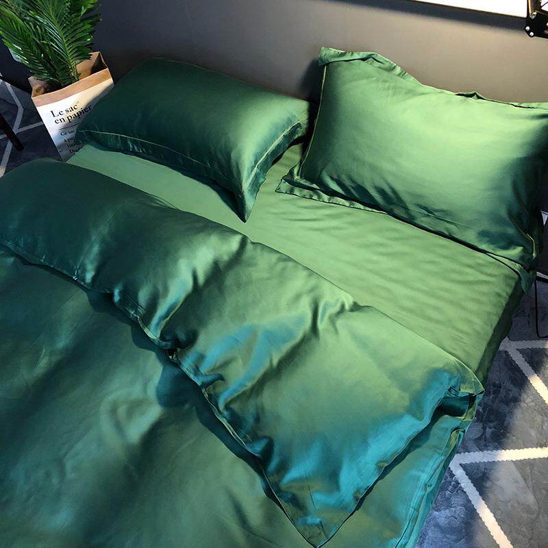 丝滑纯色60支双面天丝四件套 绿色床上用品冰丝被套裸睡夏1.8