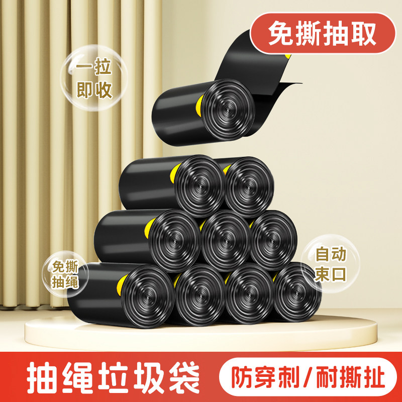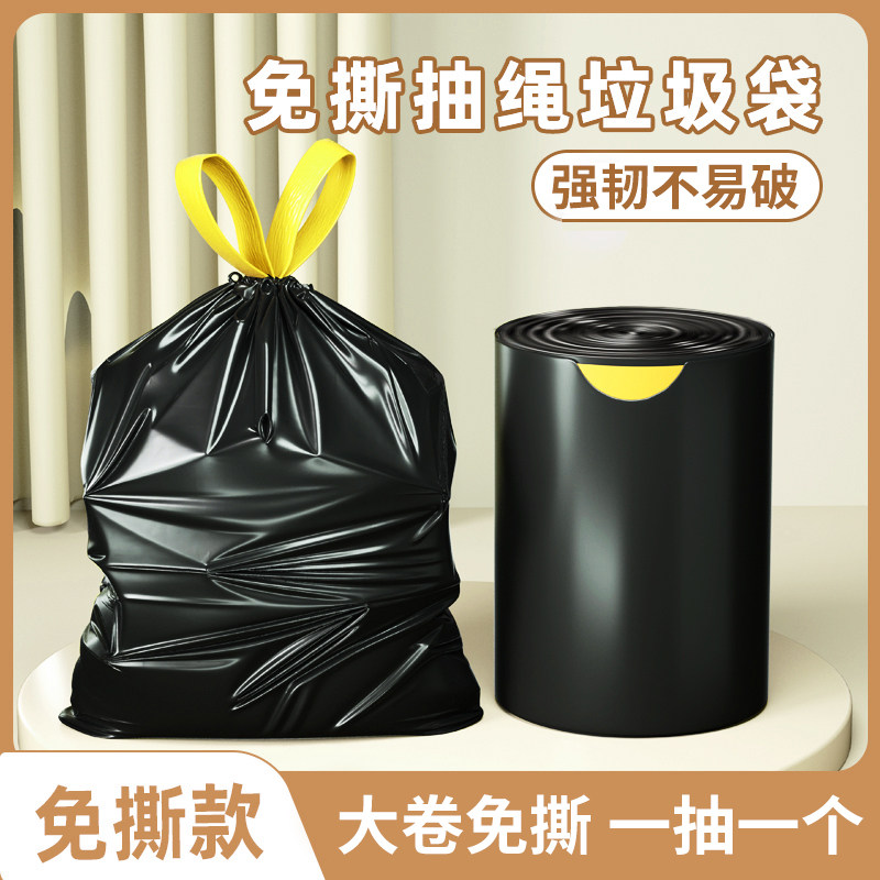 免撕抽绳垃圾袋加厚家用手提式特厚厨房用黑色大号实惠装塑料袋