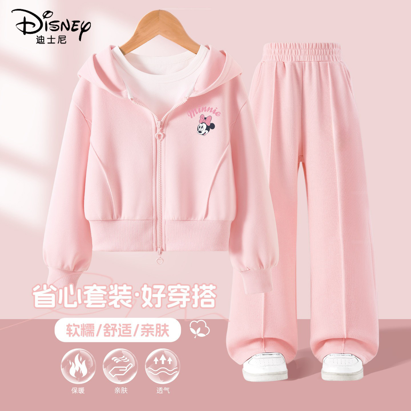 迪士尼女童春秋套装2026新款春装儿童运动连帽卫衣女孩春季两件套