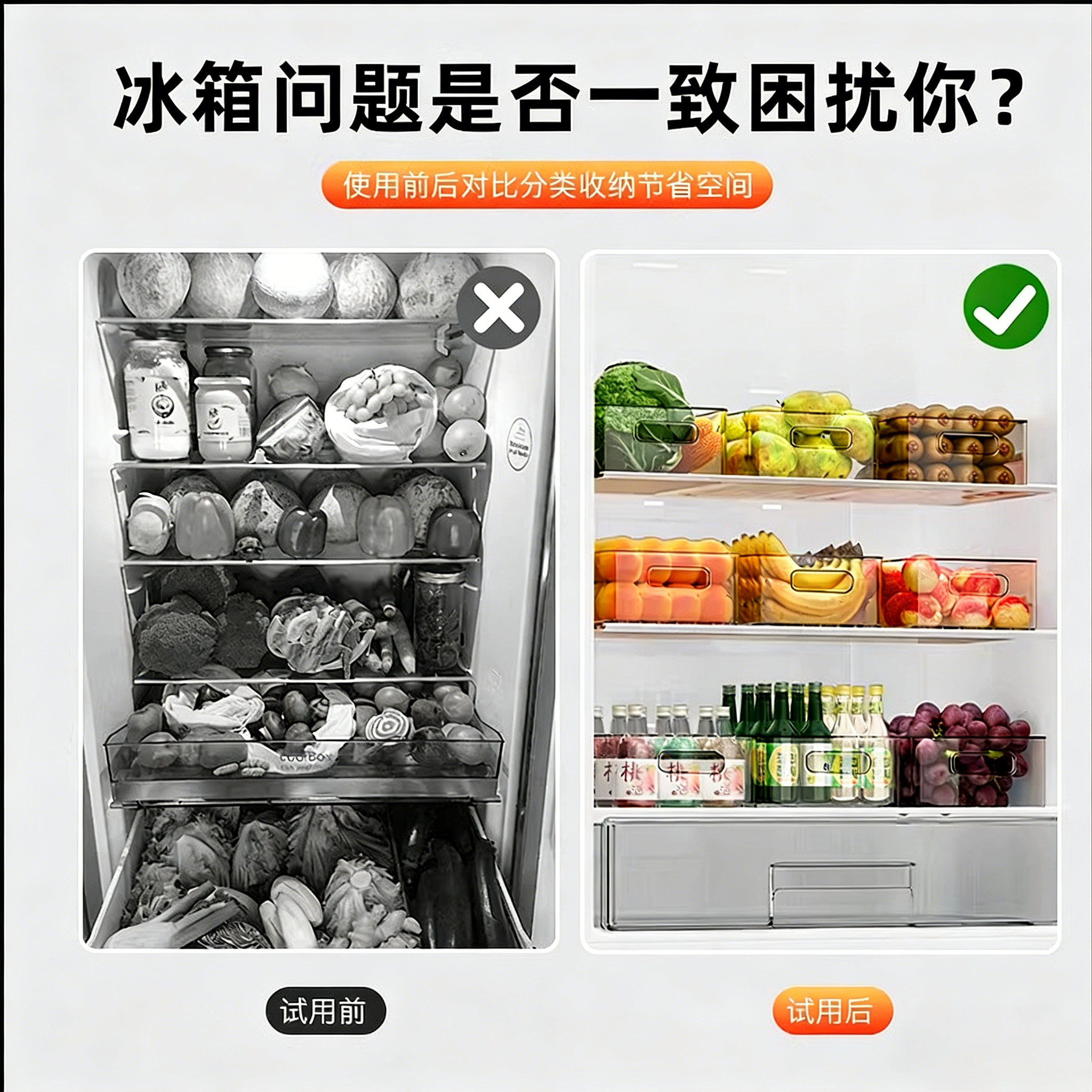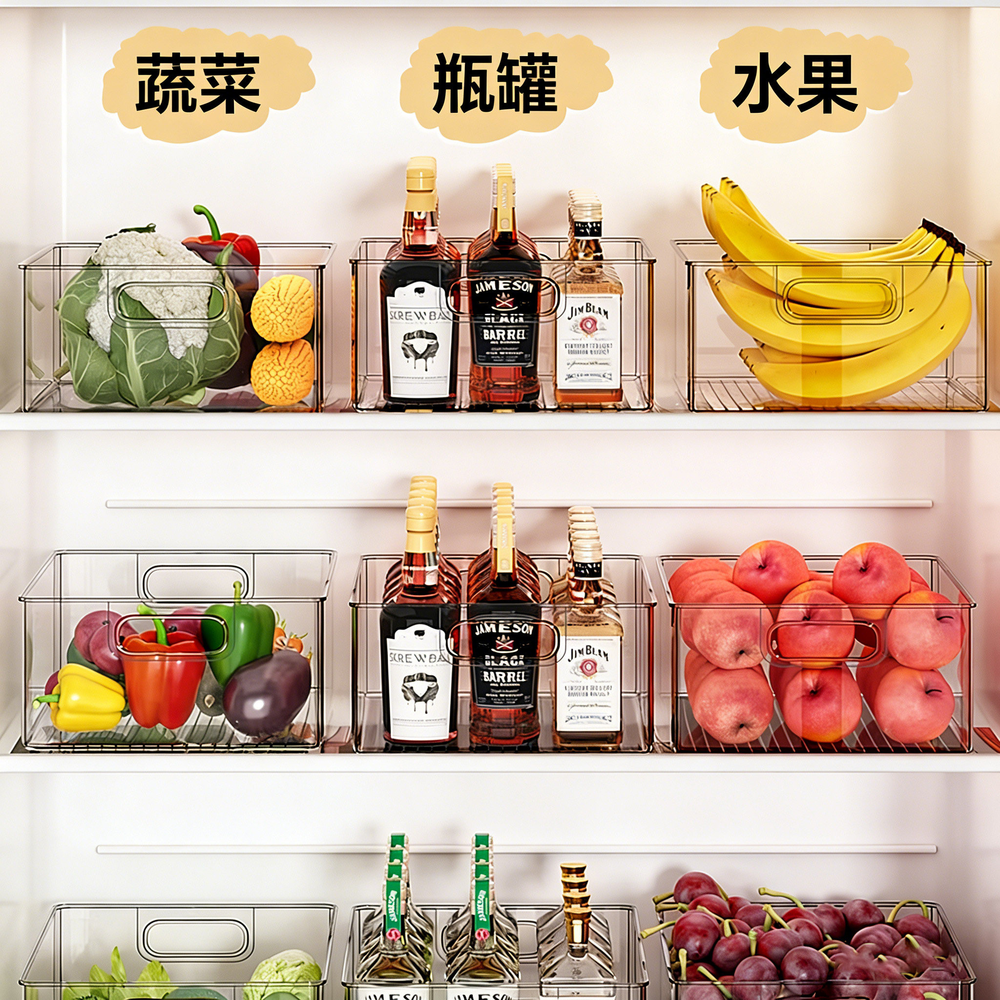 冰箱收纳盒厨房食物水果蔬菜鸡蛋分装保鲜盒透明亚克力展示置物盒