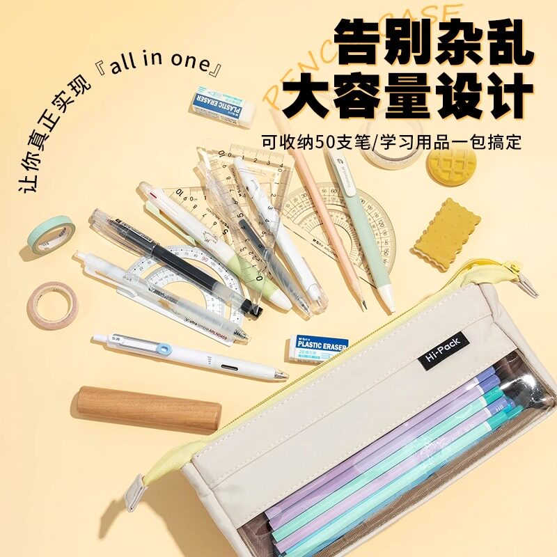 晨光HiPack笔袋高颜值ins风文具盒简约女孩款2025新款铅笔透明大容量小学初中高中生男生男孩考试小众不撞款