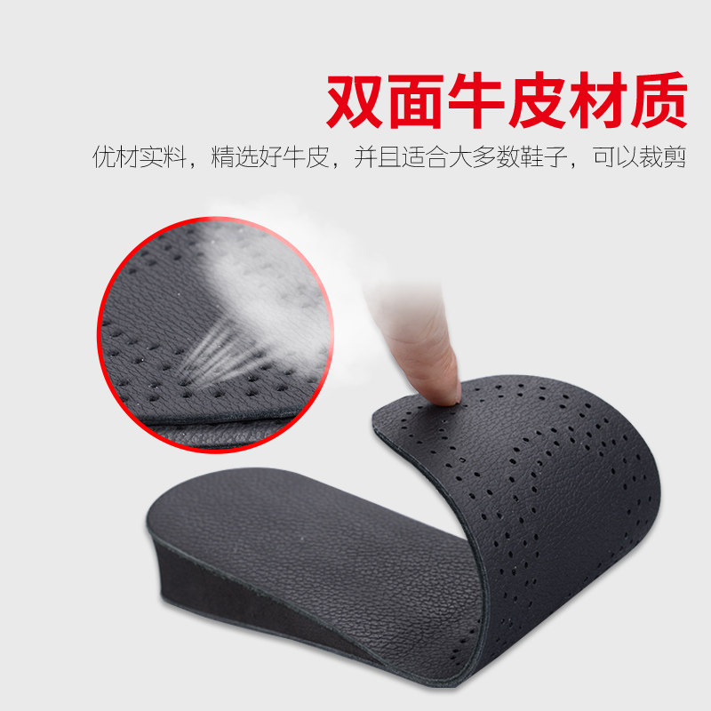 2双 双面牛皮内增高鞋垫透气吸汗隐形运动鞋垫男士女式增高垫黑色