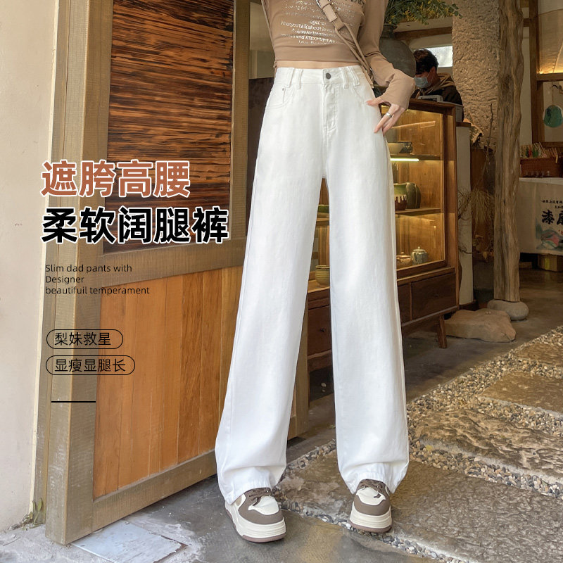 直筒牛仔裤女2026春秋新款白色高腰宽松小高个子松弛感窄版阔腿裤