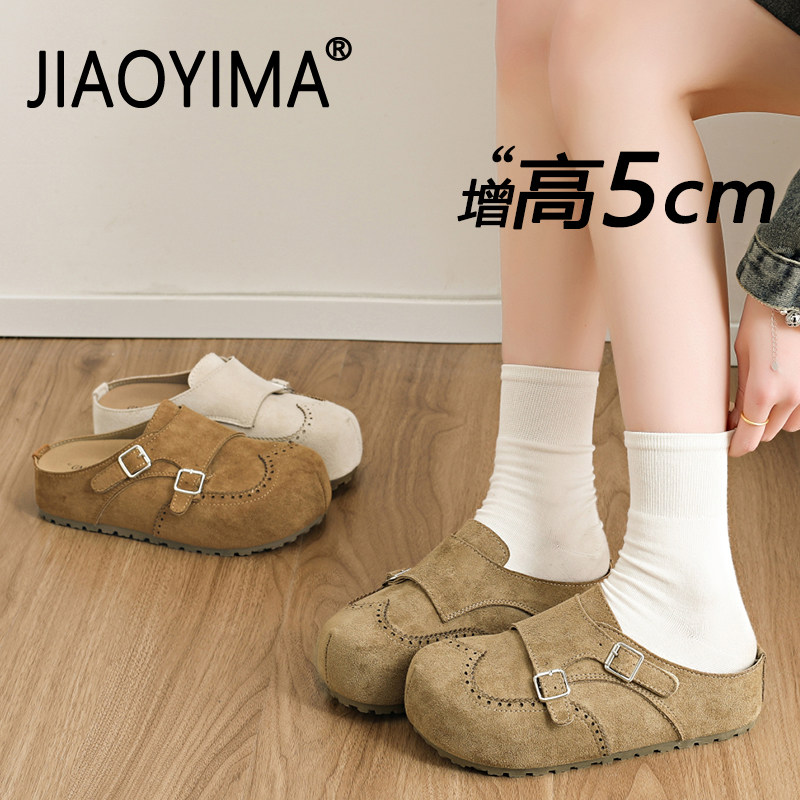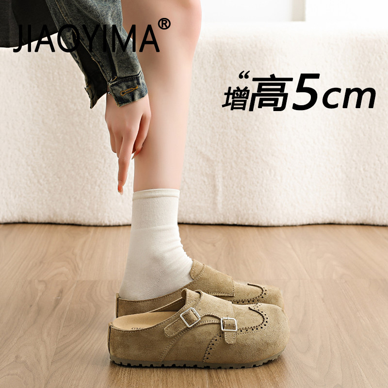 勃肯鞋女厚底2026新款春夏季一脚蹬内增高懒人休闲鞋包头半拖鞋