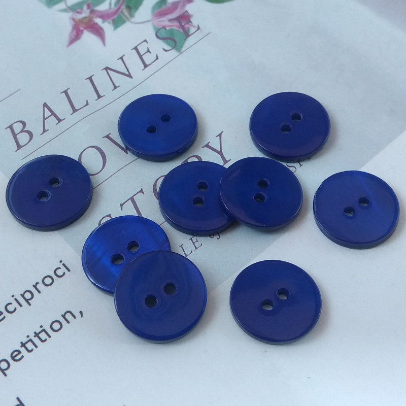 圆形两眼贝壳纽扣真贝壳纽扣平面宝蓝色河贝钮扣男女衬衫衬衣扣