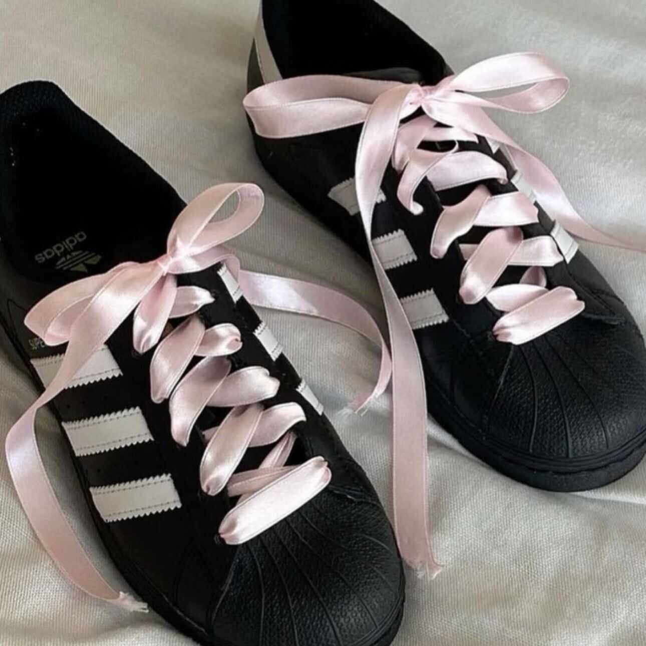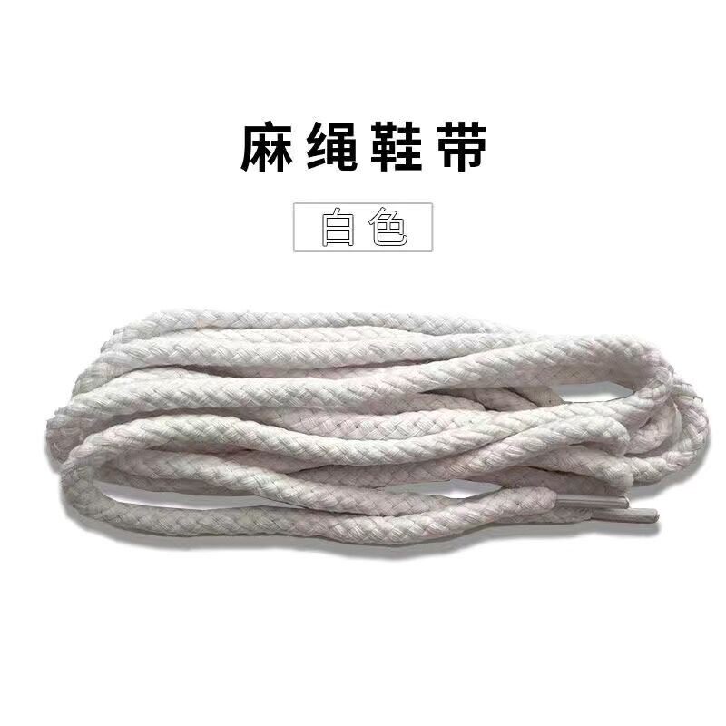 适配阿迪贝壳头黑白米色麻绳棉麻7mm圆形粗鞋带粉色丝绸鞋绳配饰
