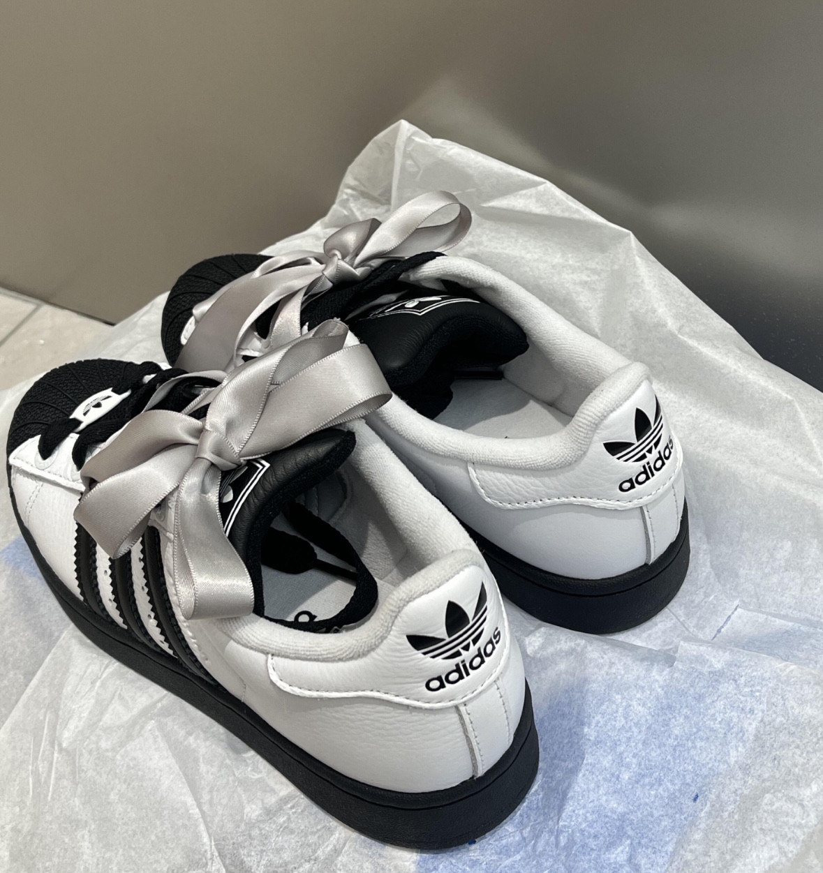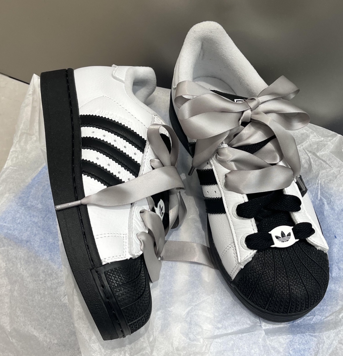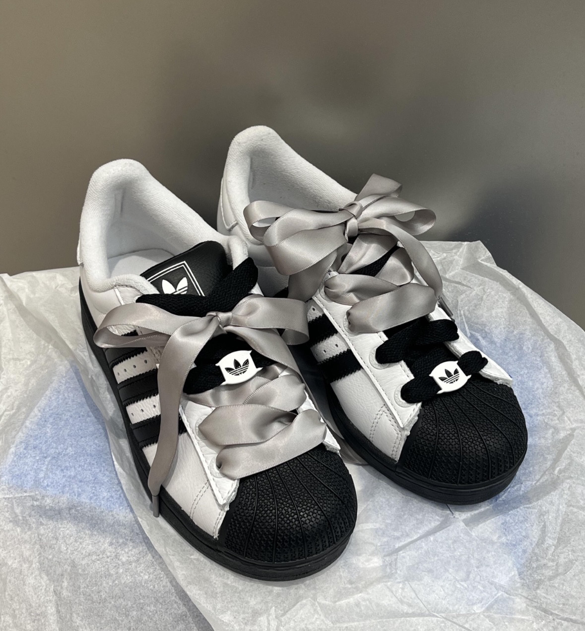 适配阿迪贝壳头superstar2黑粉色芭蕾风丝带鞋绳德训鞋银丝绸鞋带