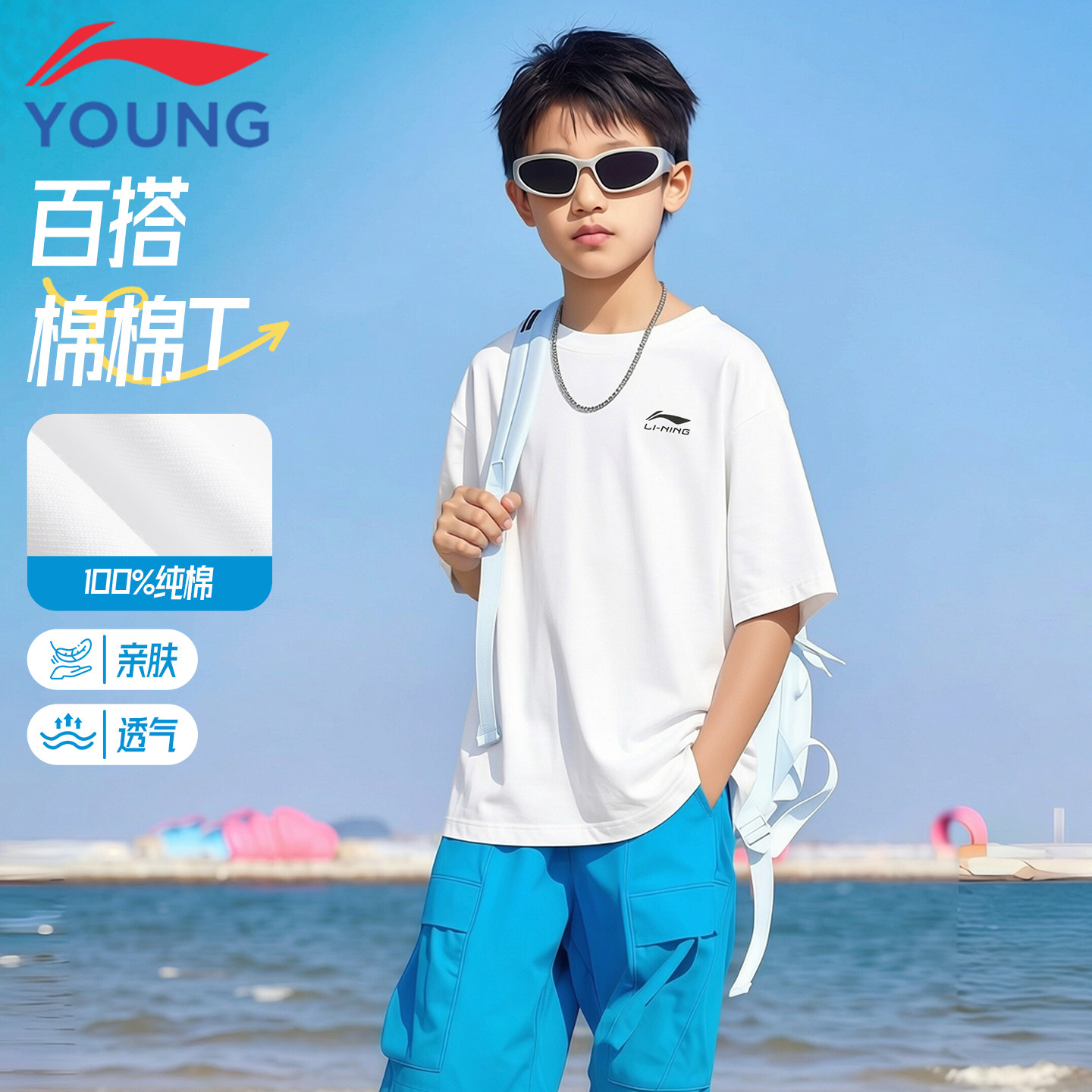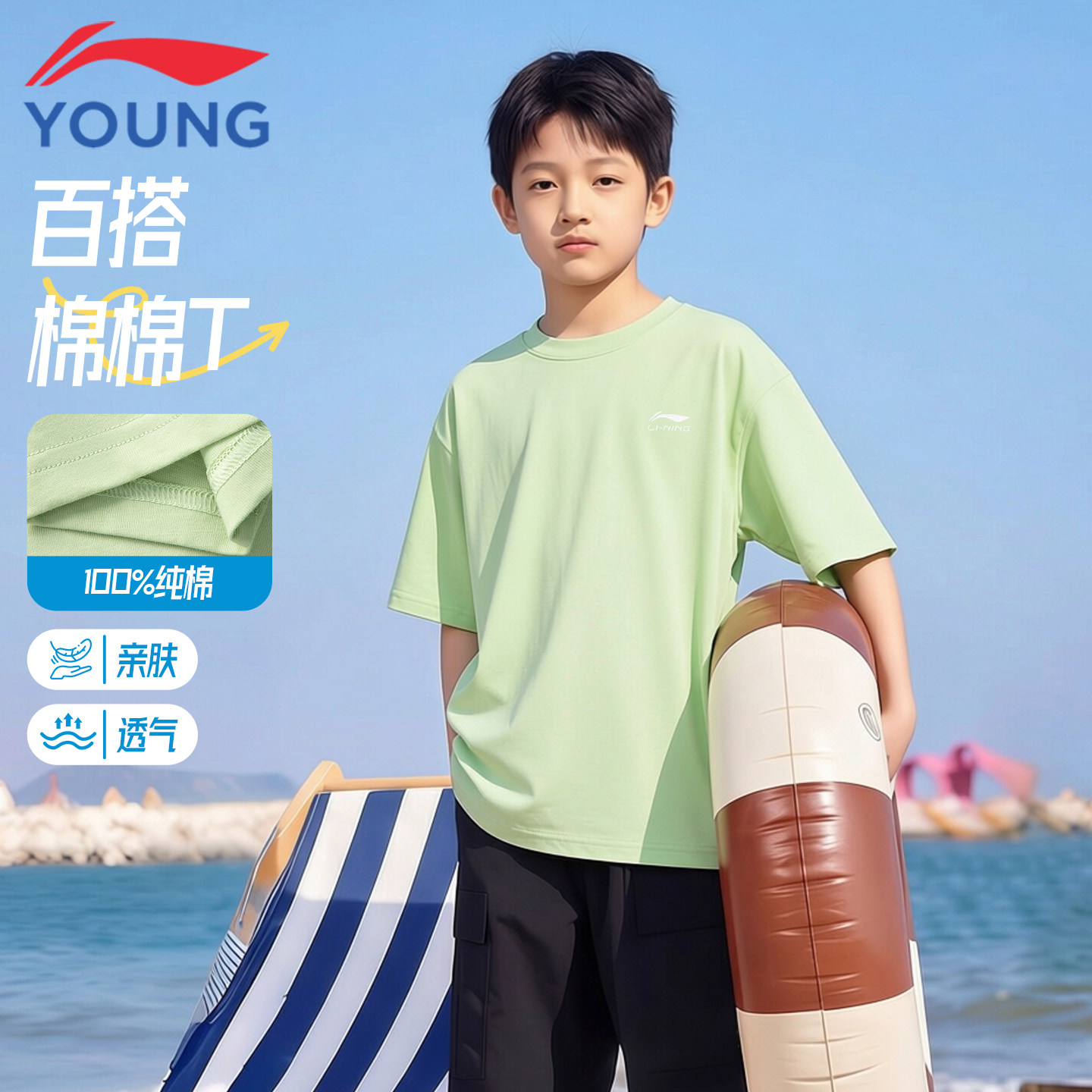 李宁儿童短袖T恤男大童女童2026夏季新款青少年休闲舒适纯棉半袖