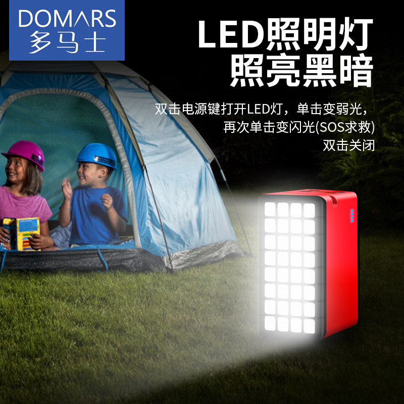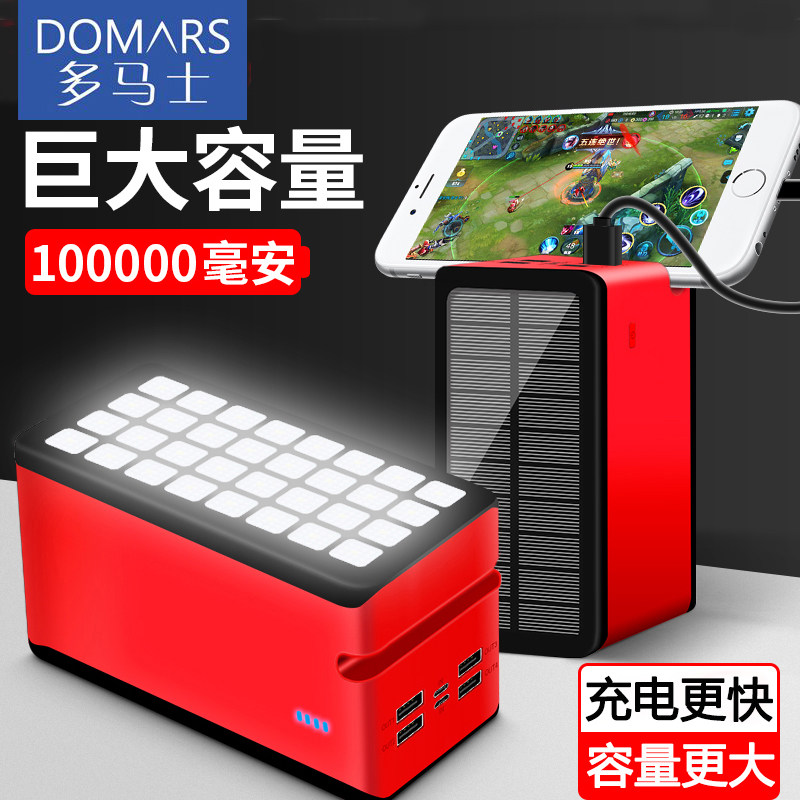 多马士10万毫安户外充电宝大容量100000mAh快充太阳能移动电源手机充电站露营电源备用强光手电筒可LOGO定制