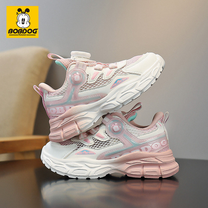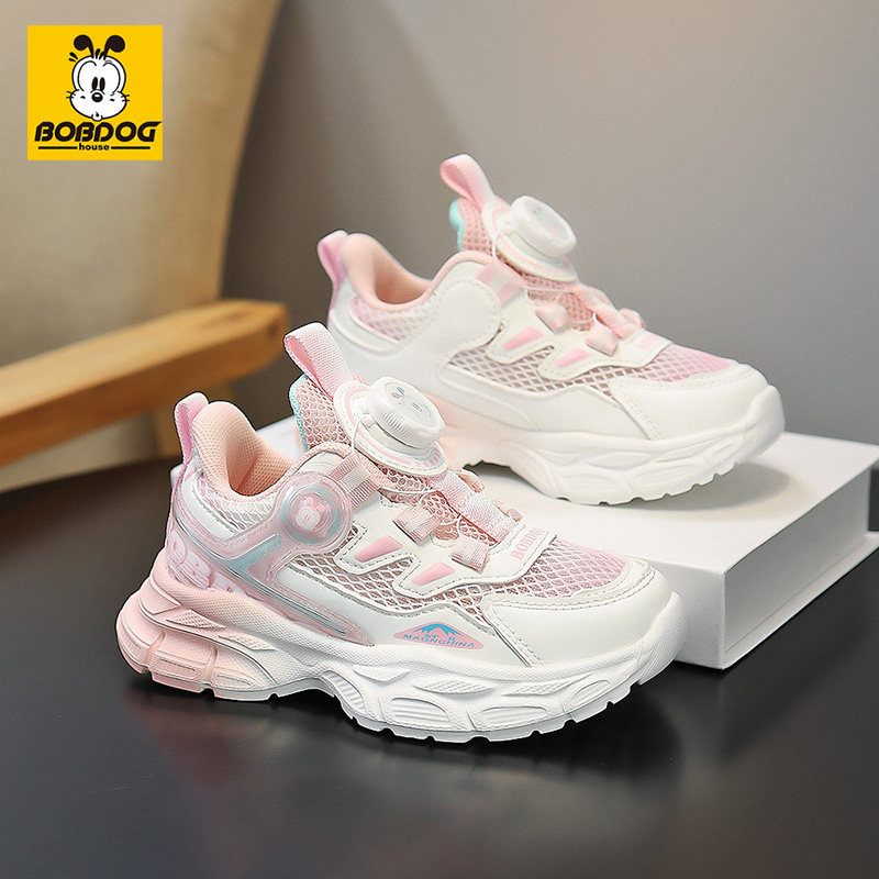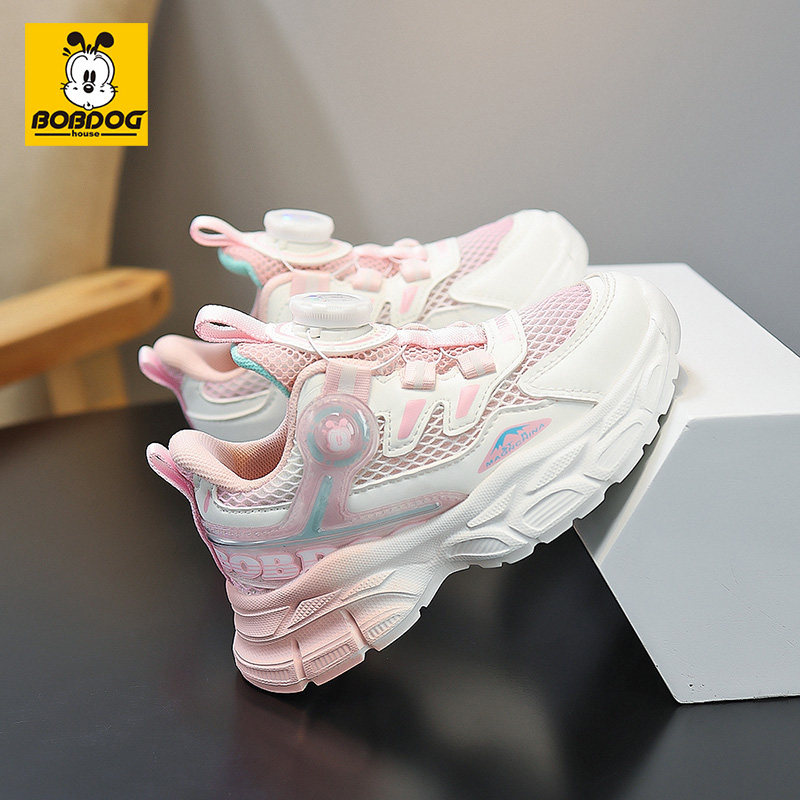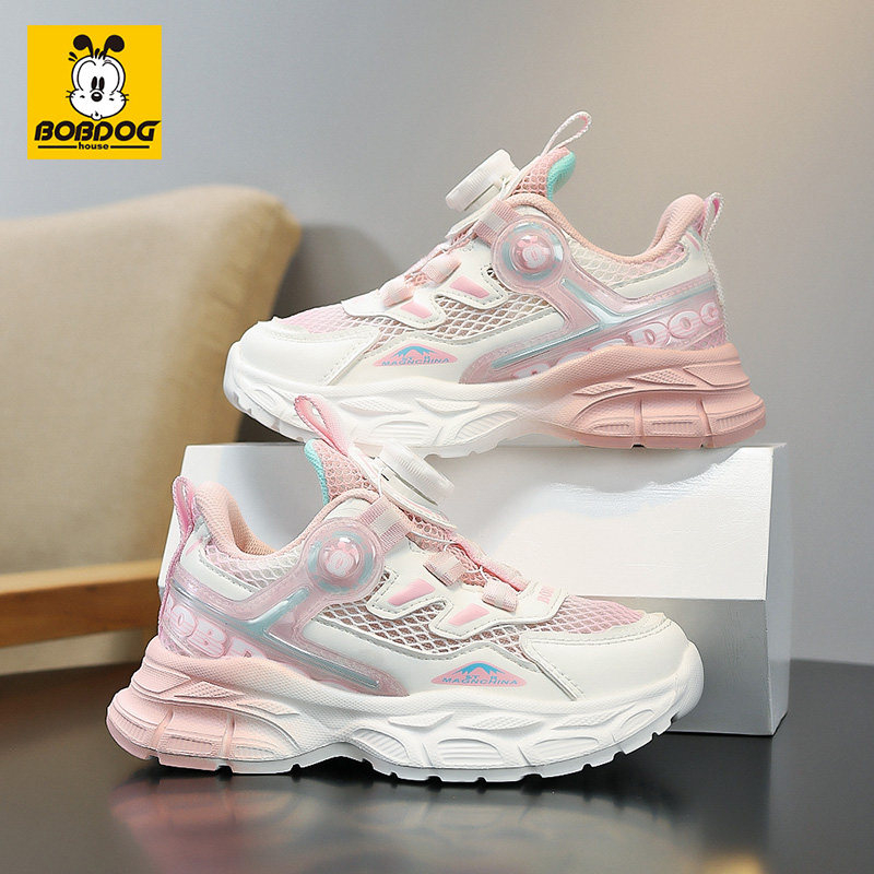巴布豆女童运动鞋2026春秋新款旋钮扣网面透气学生跑步鞋减震轻便