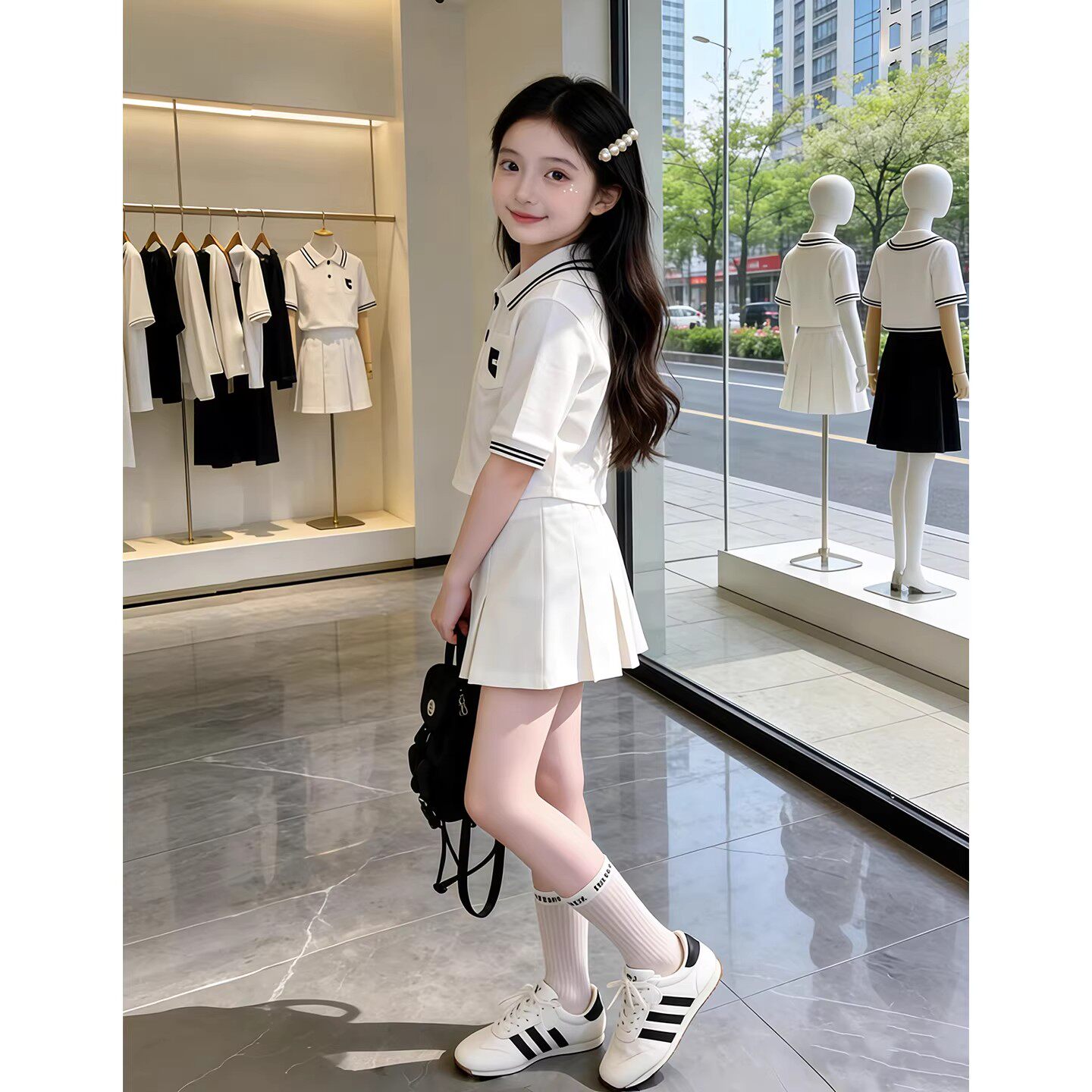 女童套装夏装2026新款儿童夏季学院风POLO衫运动服女孩春夏款衣服