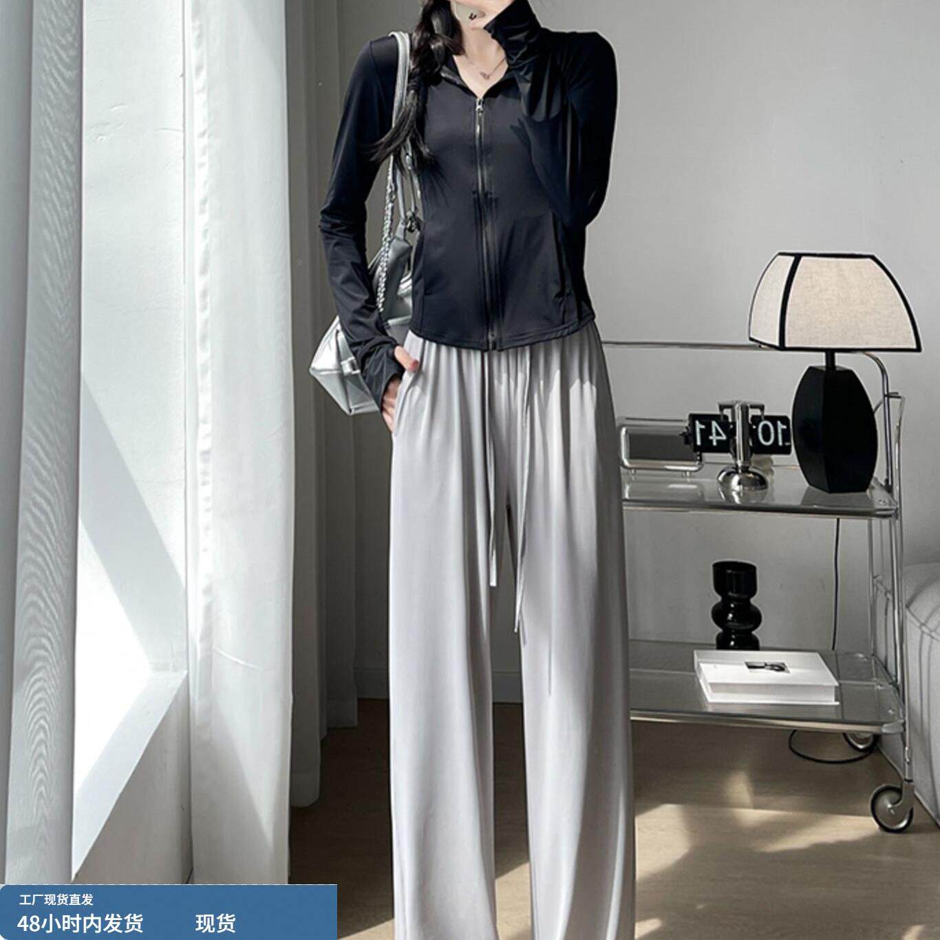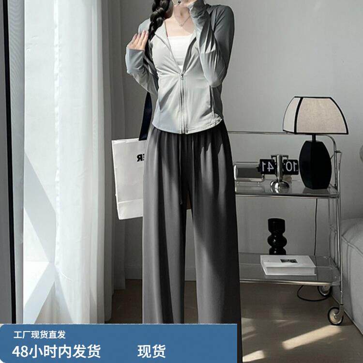 冰丝防晒衣休闲运动套装女夏季薄款小个子洋气减龄跑步时尚两件套