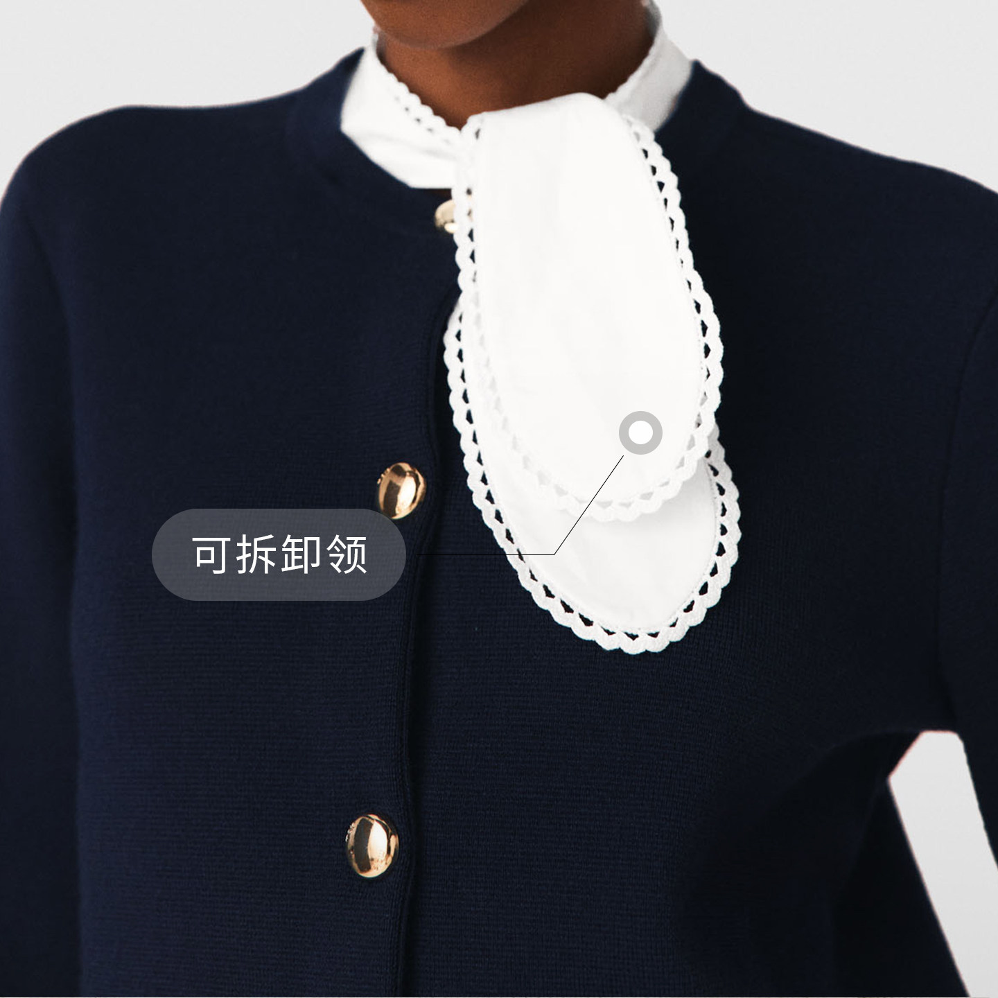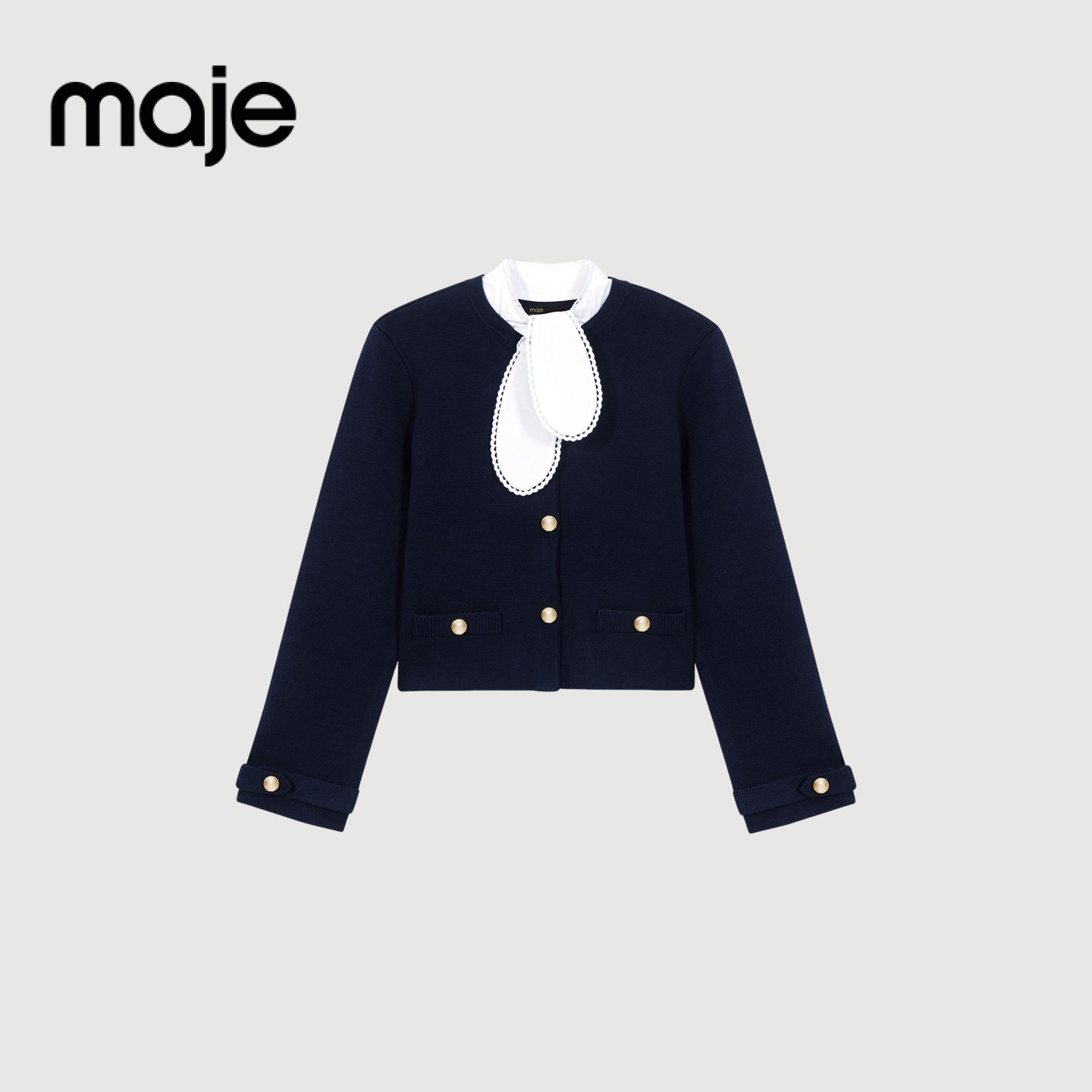 Maje2026早春新款女装法式时尚可拆卸领单排扣深蓝色长袖针织开衫