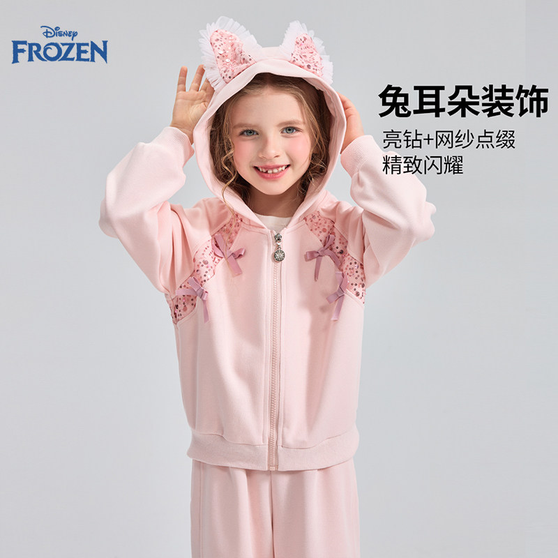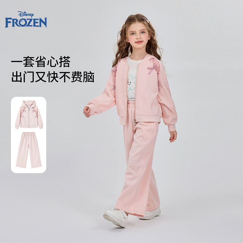 迪士尼艾莎公主女童套装2026春秋新款洋气儿童外套休闲裤运动套装