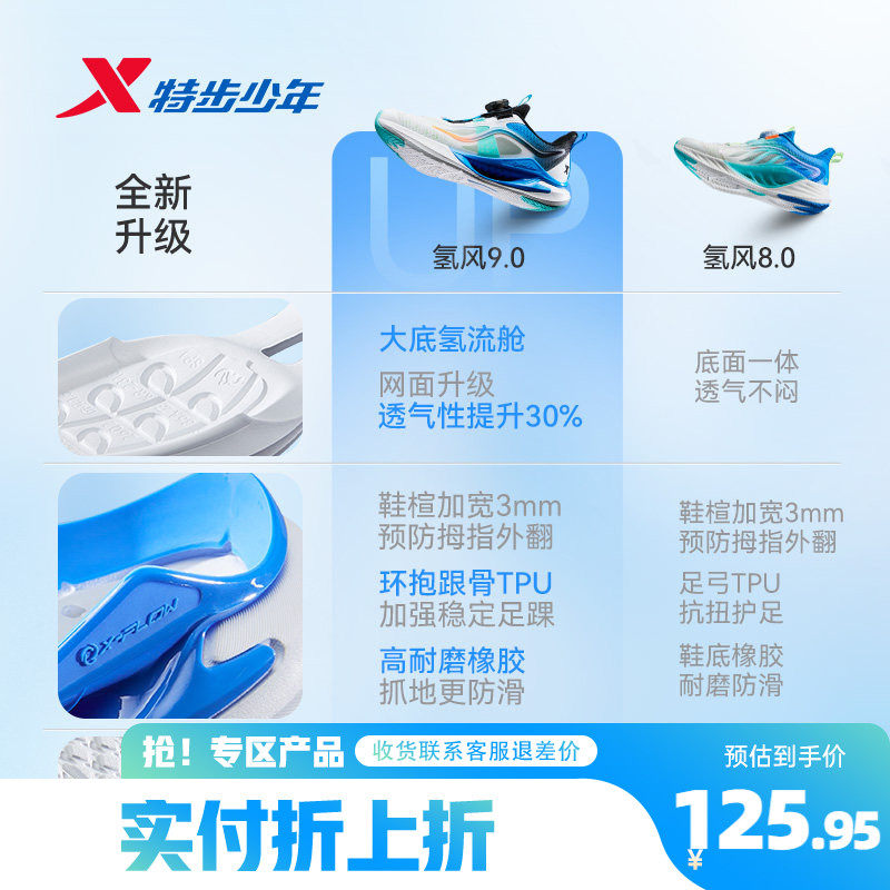 【氢风9.0跑鞋】特步儿童官方网面透气跑步鞋男童运动鞋女童鞋子