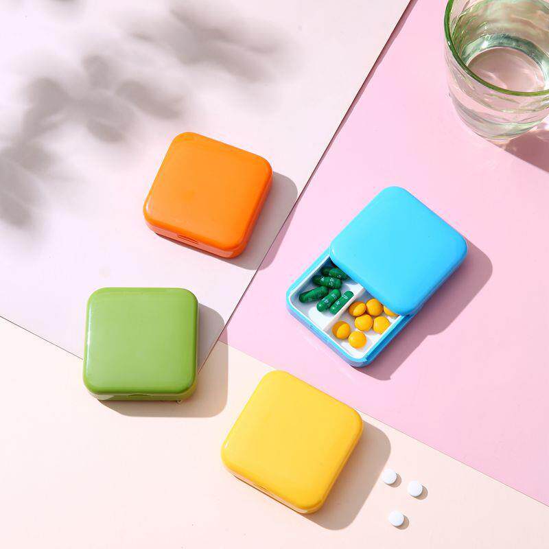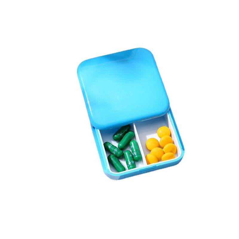 便携推拉式2格方形药盒卡通色迷你分装密封防尘塑料收纳盒印L定制