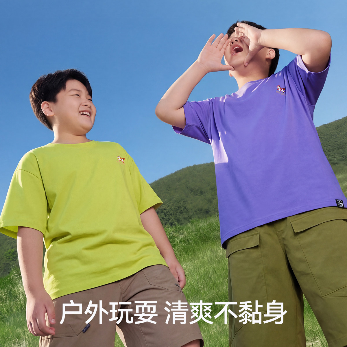 小猪托尼男童短袖t恤青少年大童胖童装加肥加大夏装上衣儿童体恤