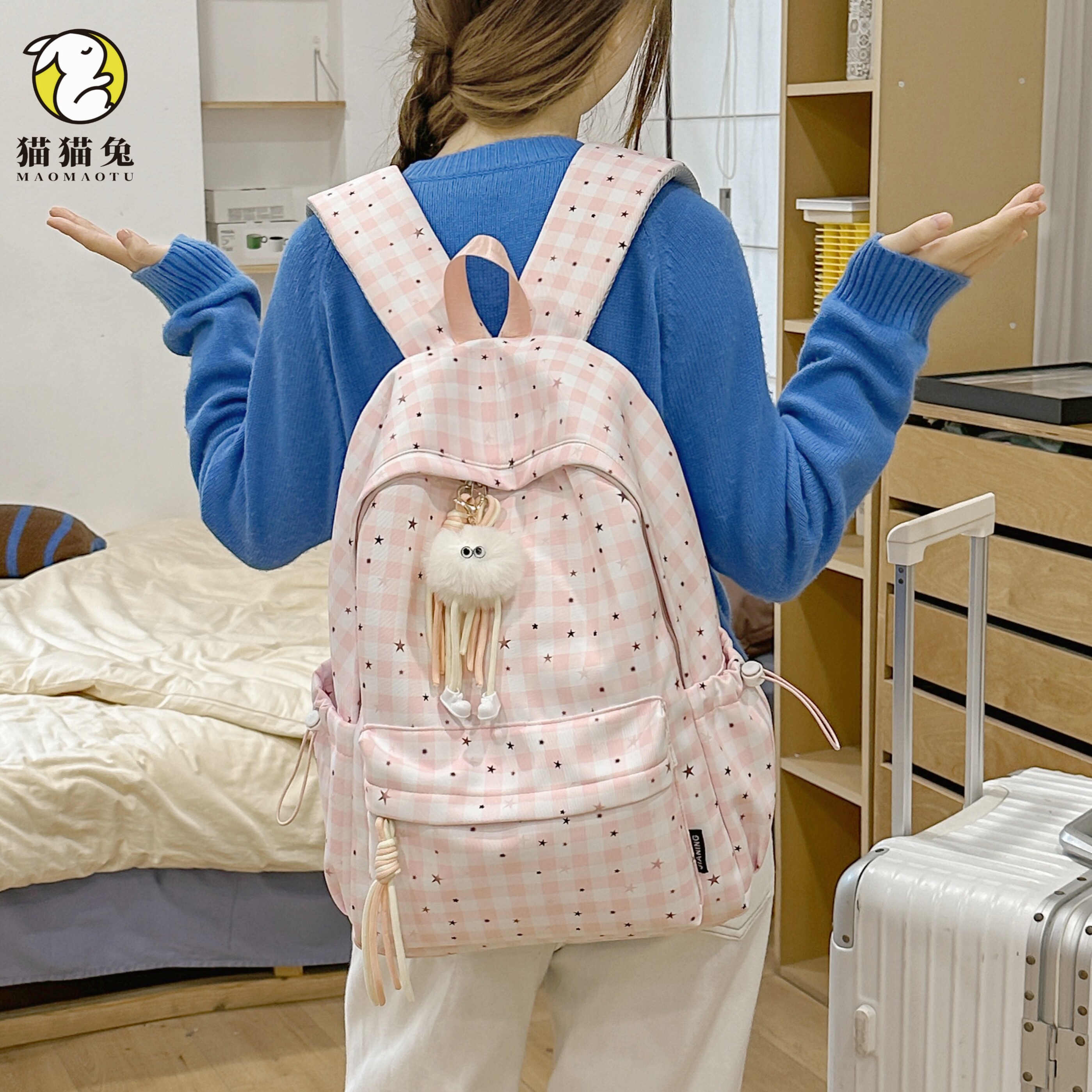 311线报网描述:猫猫兔韩系ins格纹女学生双肩包 送运费险