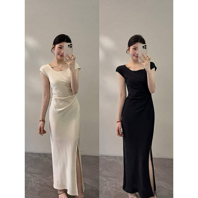 颂宋 夏季法式气质白色连衣裙高级感小个子收腰包臀长裙DT1307