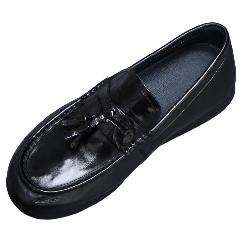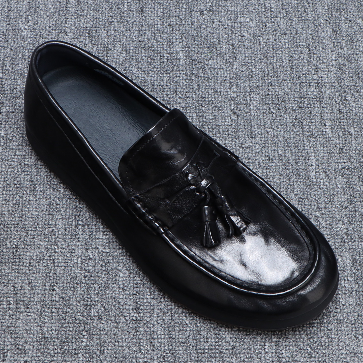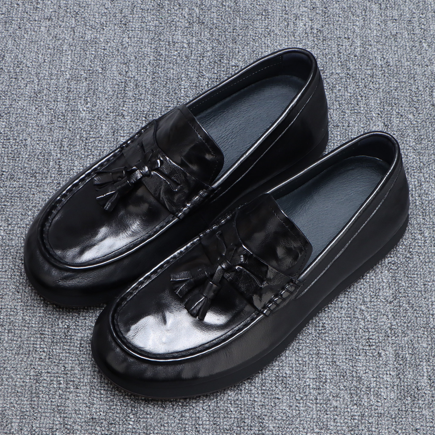真皮男鞋2026新款一脚蹬软底百搭流苏休闲皮鞋男款黑色牛皮豆豆鞋