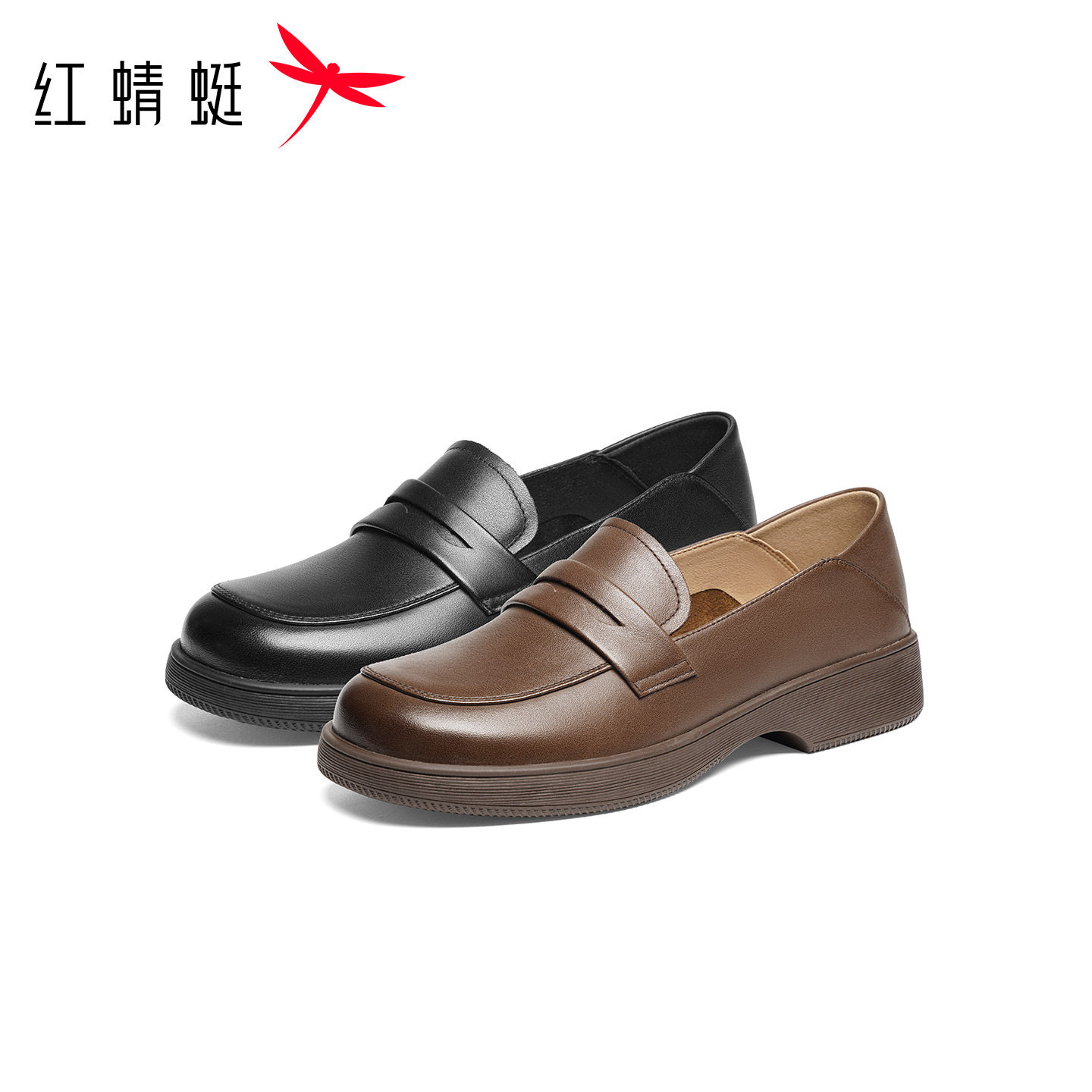 红蜻蜓皮鞋女2026春季新款女鞋黑色工作面试鞋乐福鞋不累脚妈妈鞋