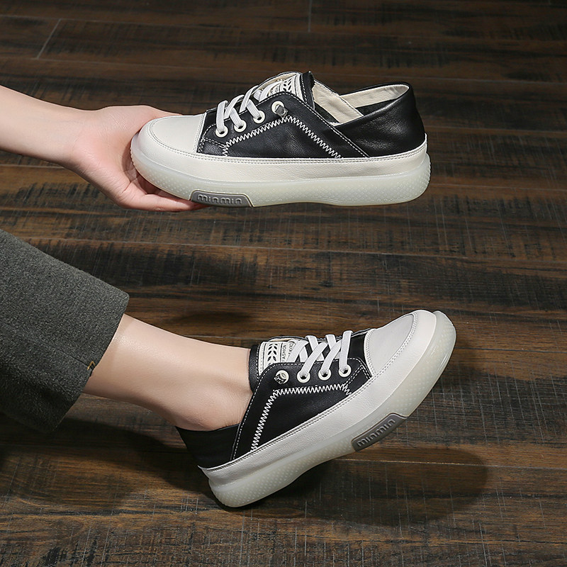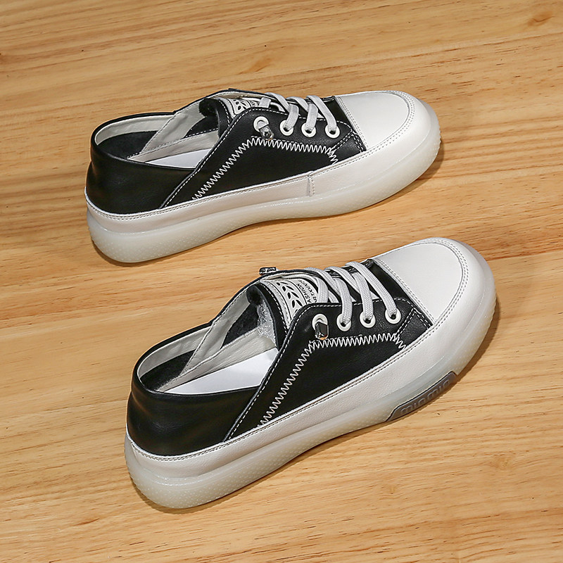 头层牛皮女鞋2026新款小白鞋真皮软底平底单鞋女士两穿复古板鞋春