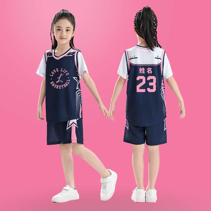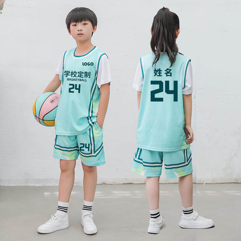 儿童篮球服套装男童假两件中小学生比赛队服女训练短袖篮球衣定制