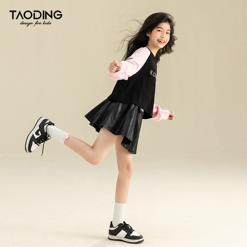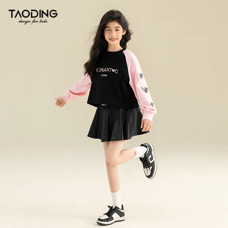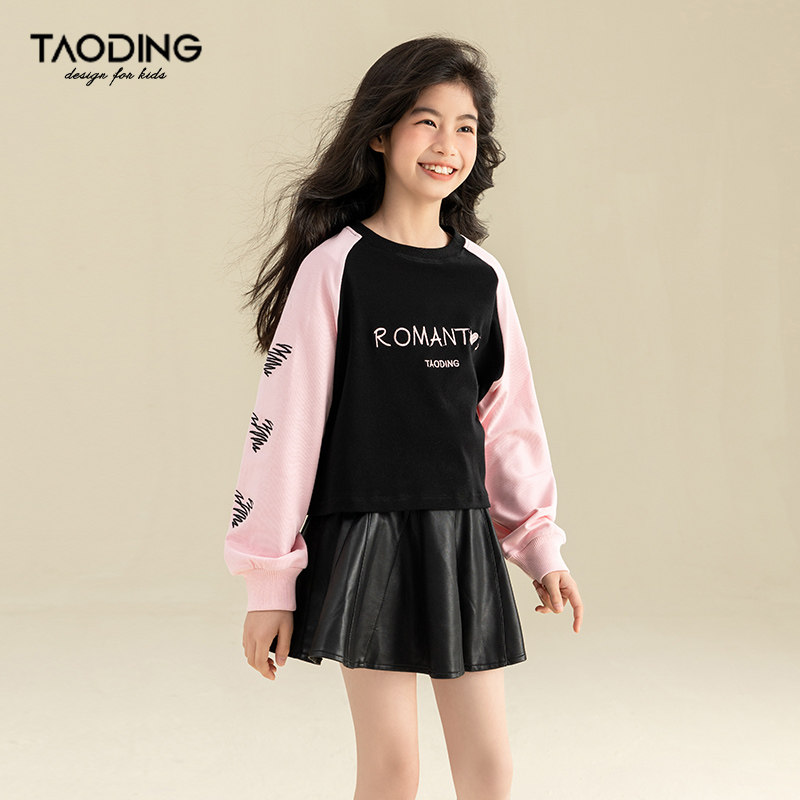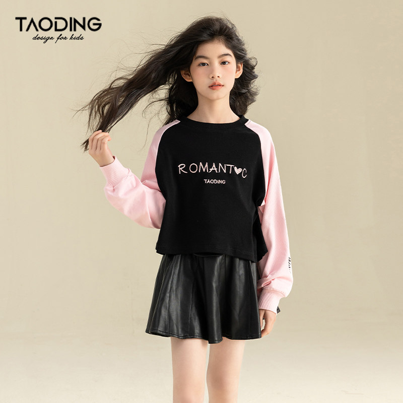 淘町女童春款卫衣2025新款中大童休闲浪漫字母绣花洋气拼接上衣韩