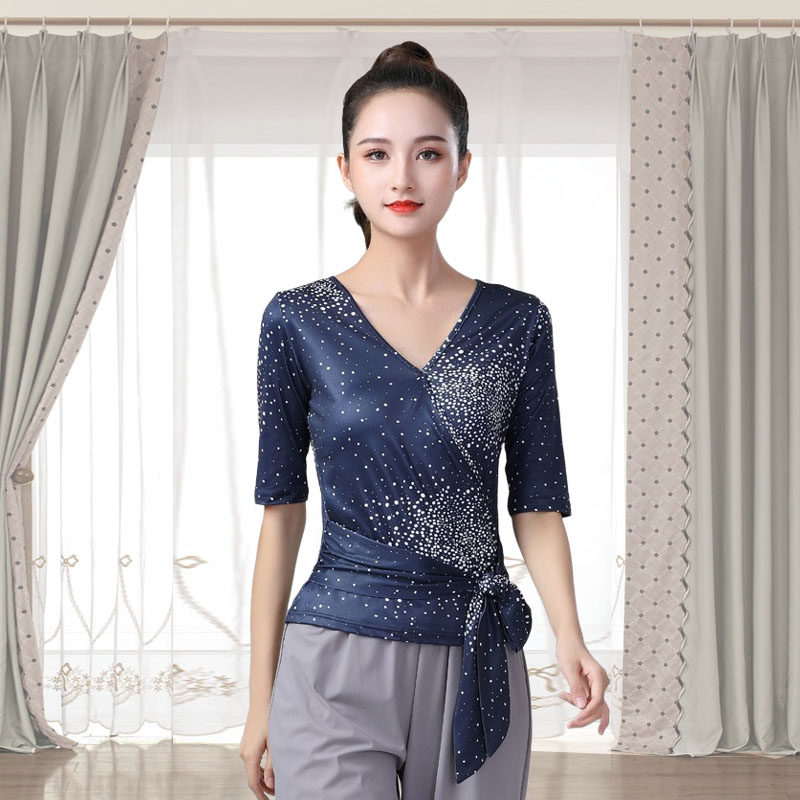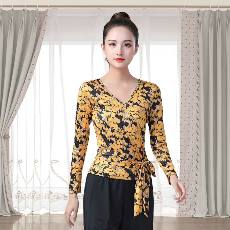 拉丁舞服上衣女成人形体服练功服2025新款高级感V领大码舞蹈服装