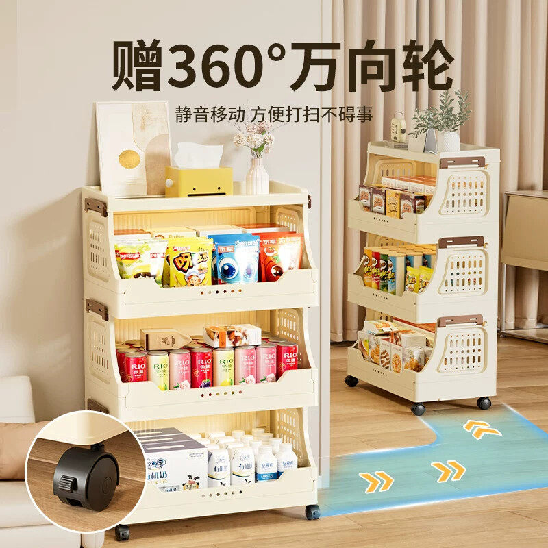 零食置物架多层收纳厨房小推车带轮移动玩具杂物整理储物柜可折叠