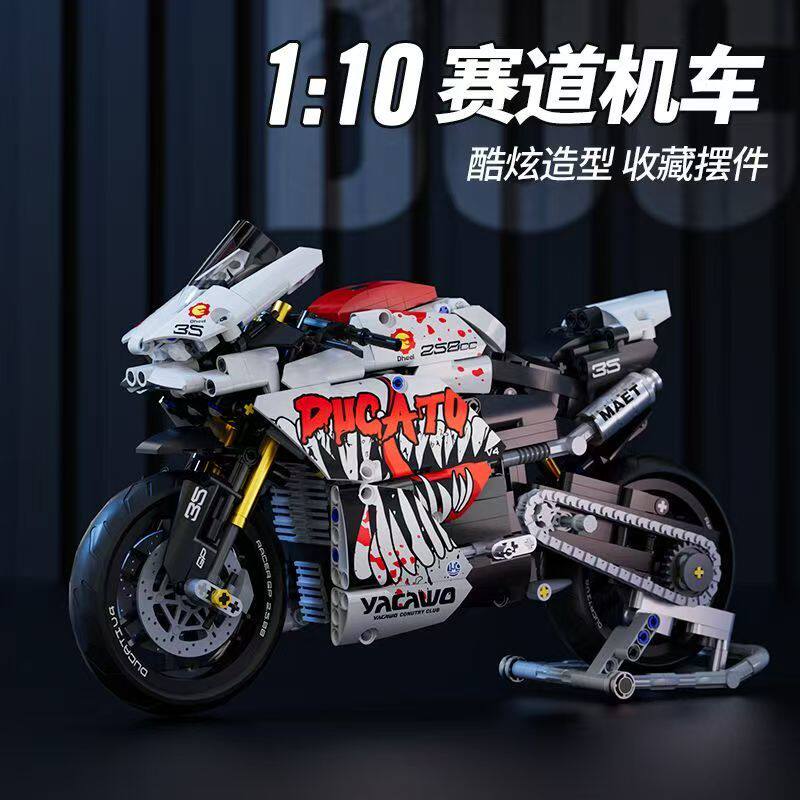 星涯优品1:10拼插积木摩托车毒液杜卡迪赛道版男机车diy玩具摆件