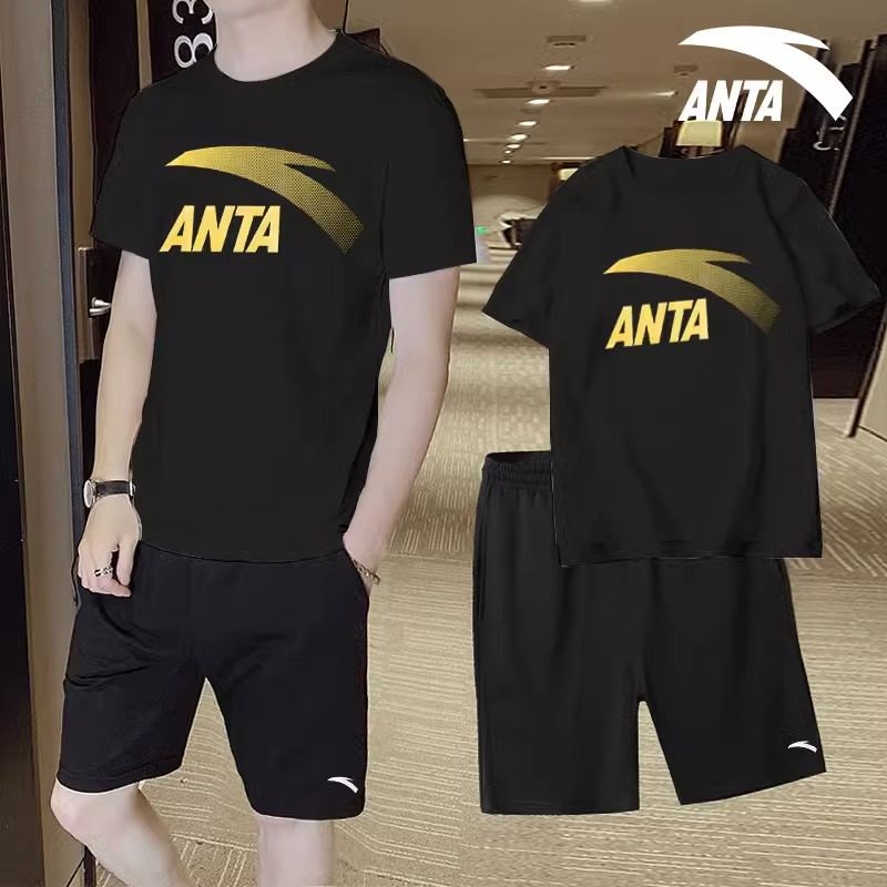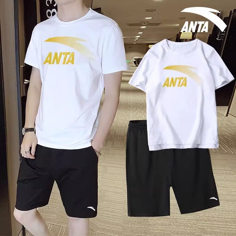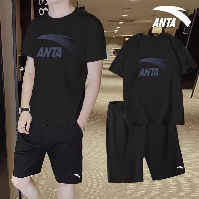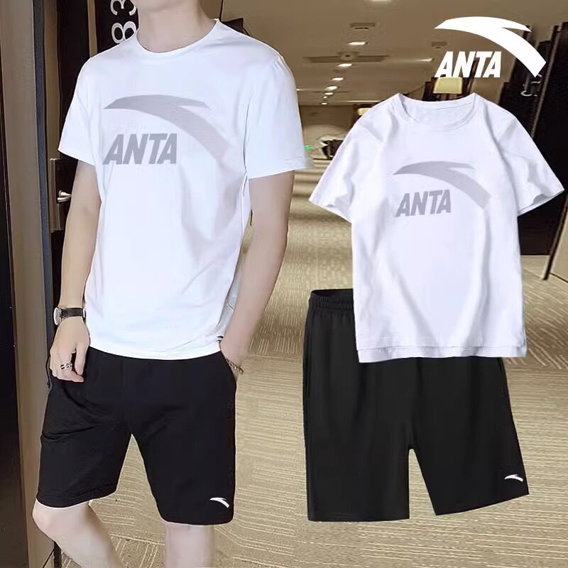 安踏跑步运动套装男夏季透气宽松休闲运动服青少年健身房短袖短裤
