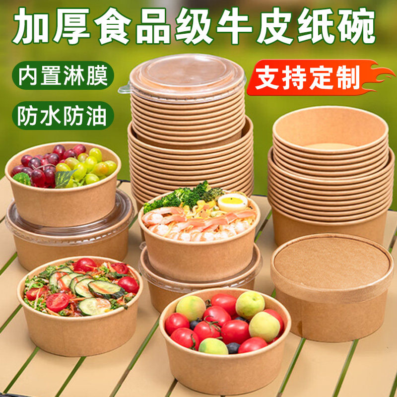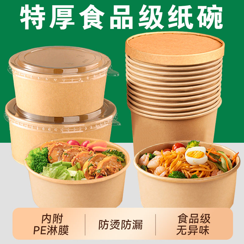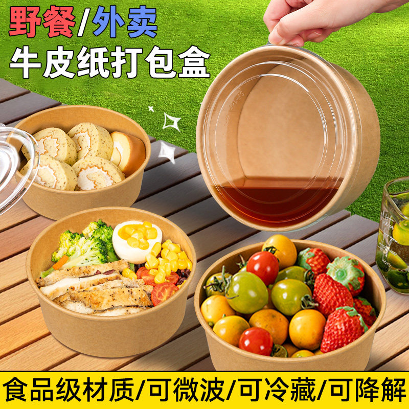 一次性饭碗快餐盒圆形带盖加厚牛皮纸外卖打包火鸡泡面便当食品级