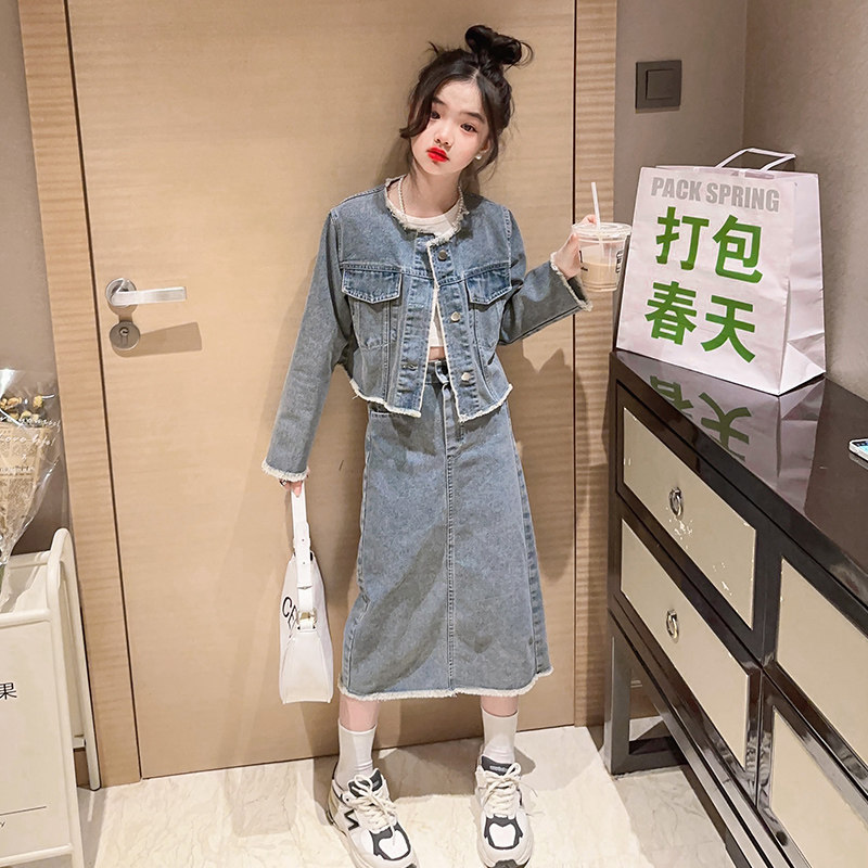 女童连衣裙春季2026新款女孩春装儿童裙子女大童早春牛仔裙甜辣风