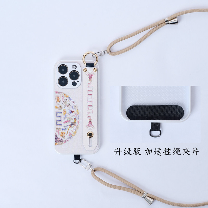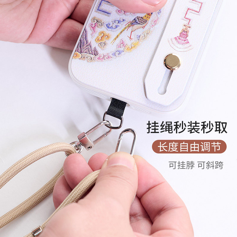 适用于苹果iphone16promax手机壳女ip15plus腕带支架斜跨挂绳可背14硅胶13全包边框防摔简约12国风保护套新款