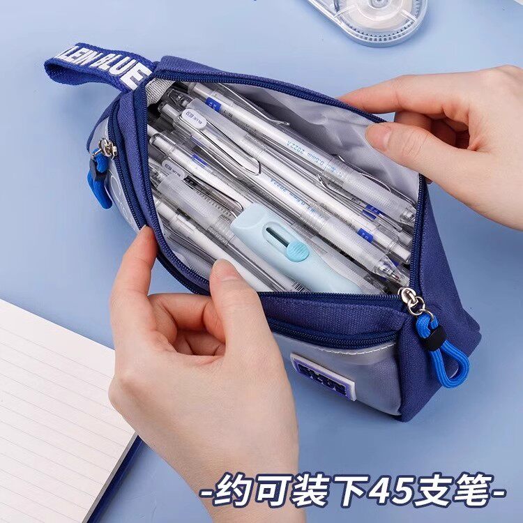 2025年新款简约日式笔袋大容量男生中小学生专用高颜值男孩用初中生透明文具盒笔盒铅笔盒简约便携多层实用型