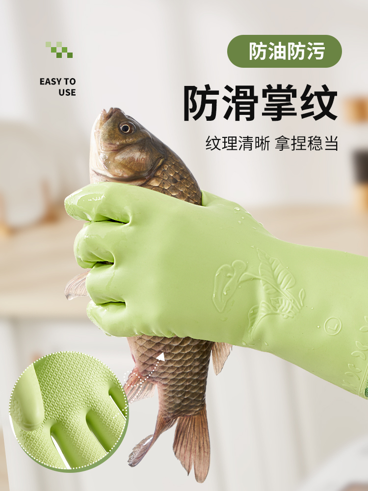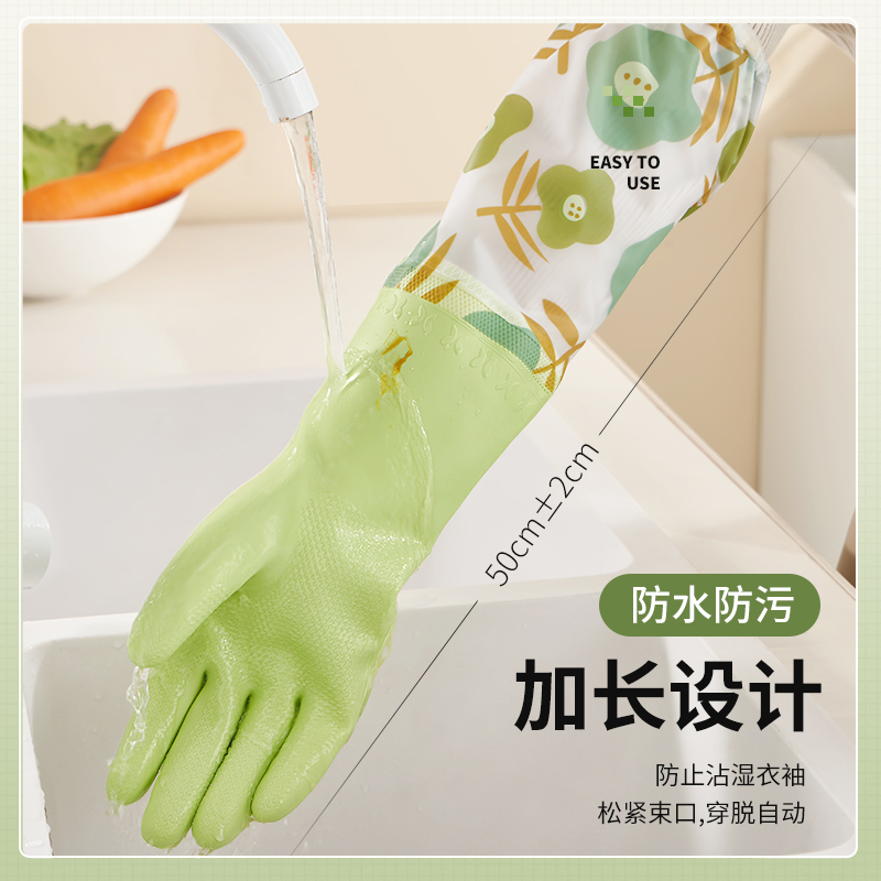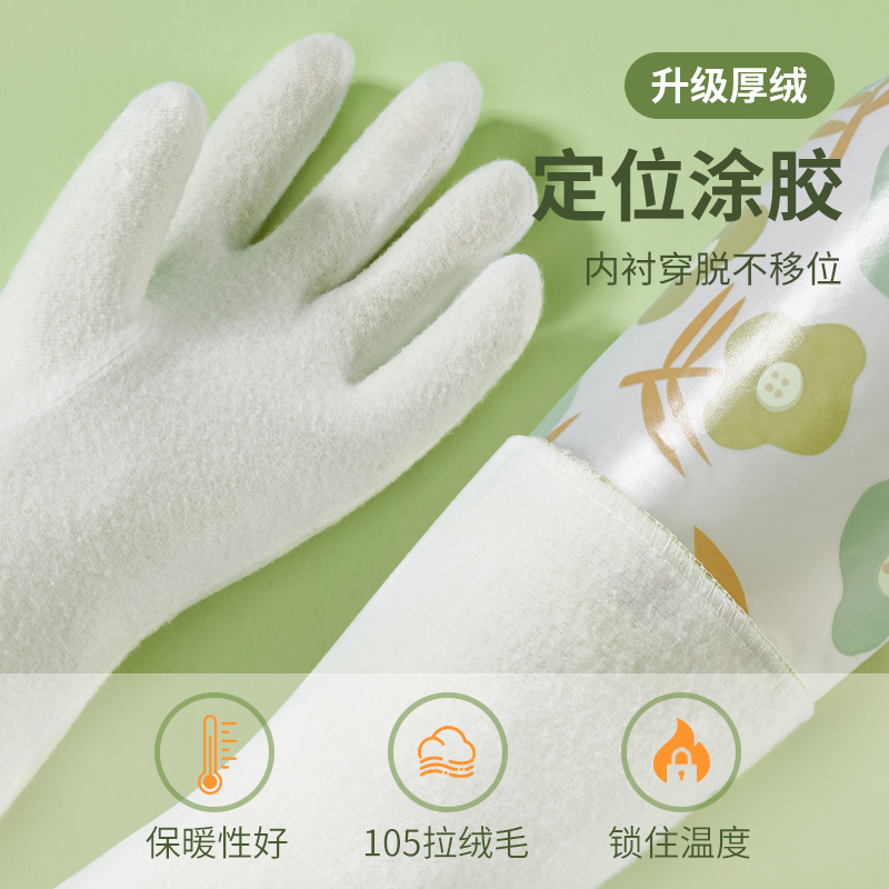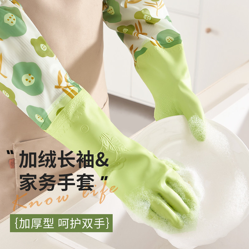 洗碗手套女加绒秋冬家务清洁厨房耐用型防水胶皮洗衣服刷碗加厚