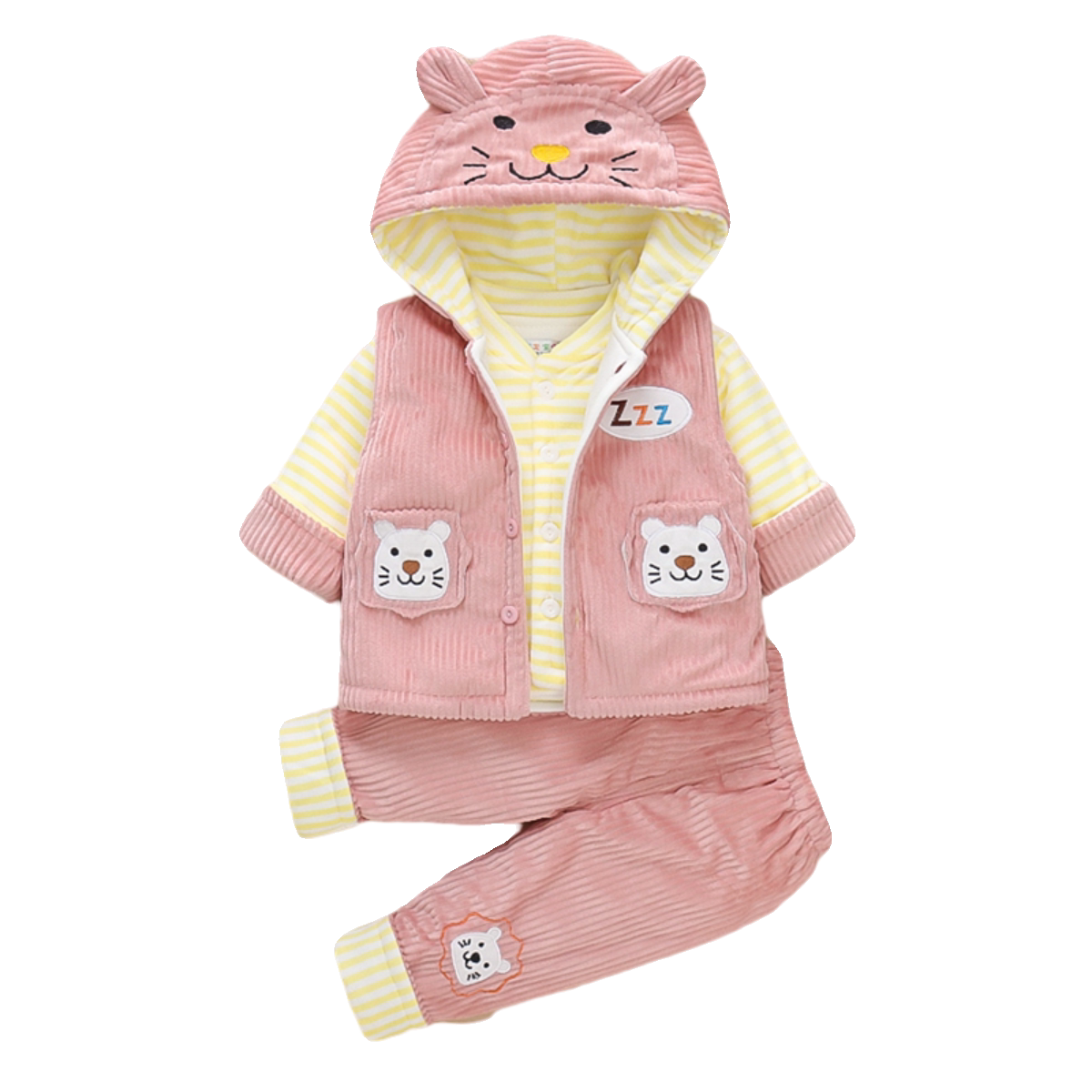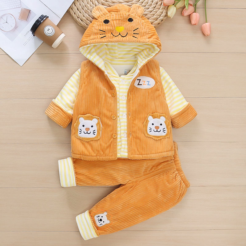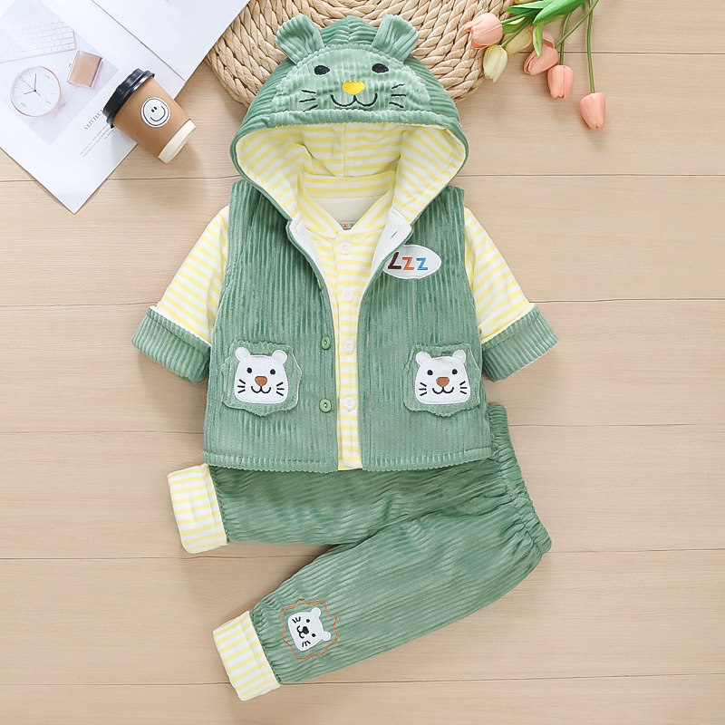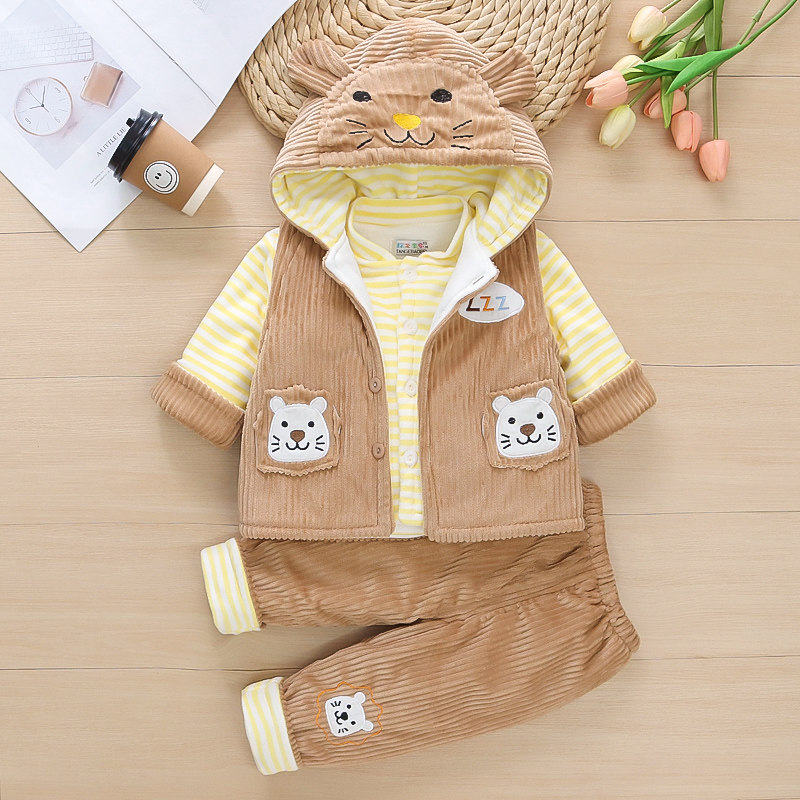 男女宝宝春秋夹棉套装01一2周岁3新生婴儿薄棉衣服冬装加厚三件套