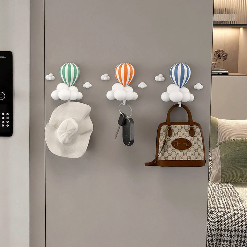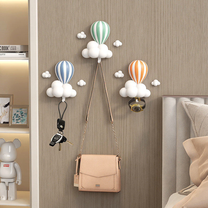 创意热气球入户玄关门后挂钩轻奢墙面装饰儿童房墙上帽子挂衣钩