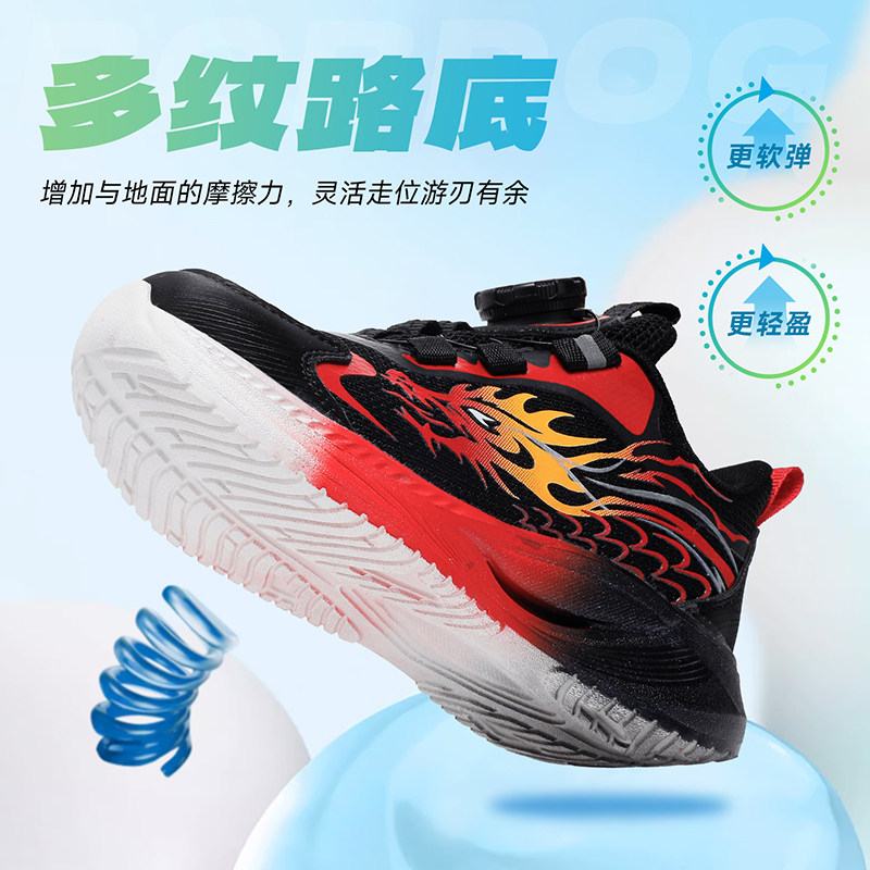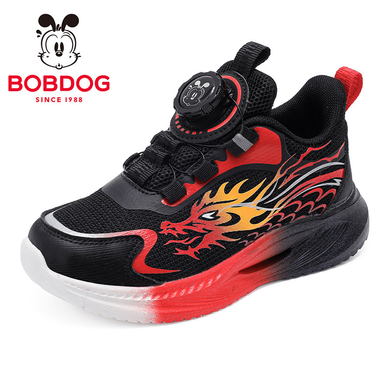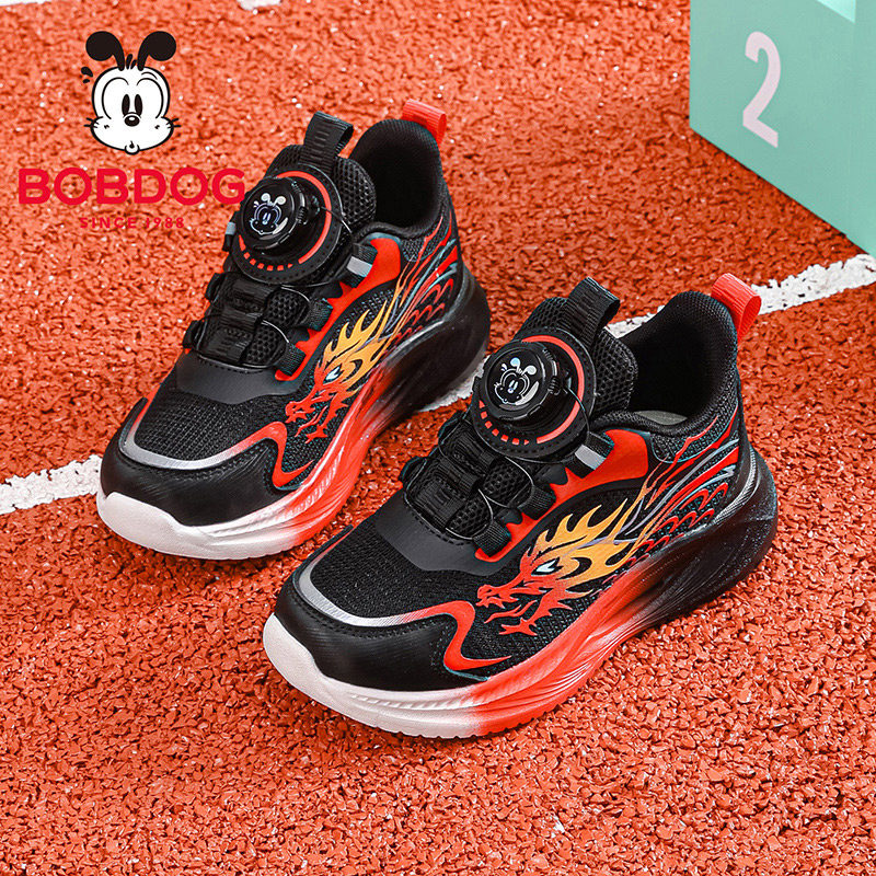 巴布豆童鞋男童运动鞋2026新款春季男孩纽扣跑步鞋红色儿童过年鞋