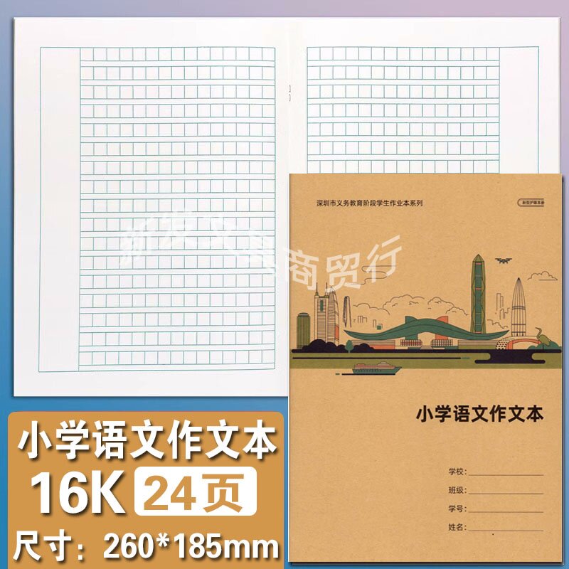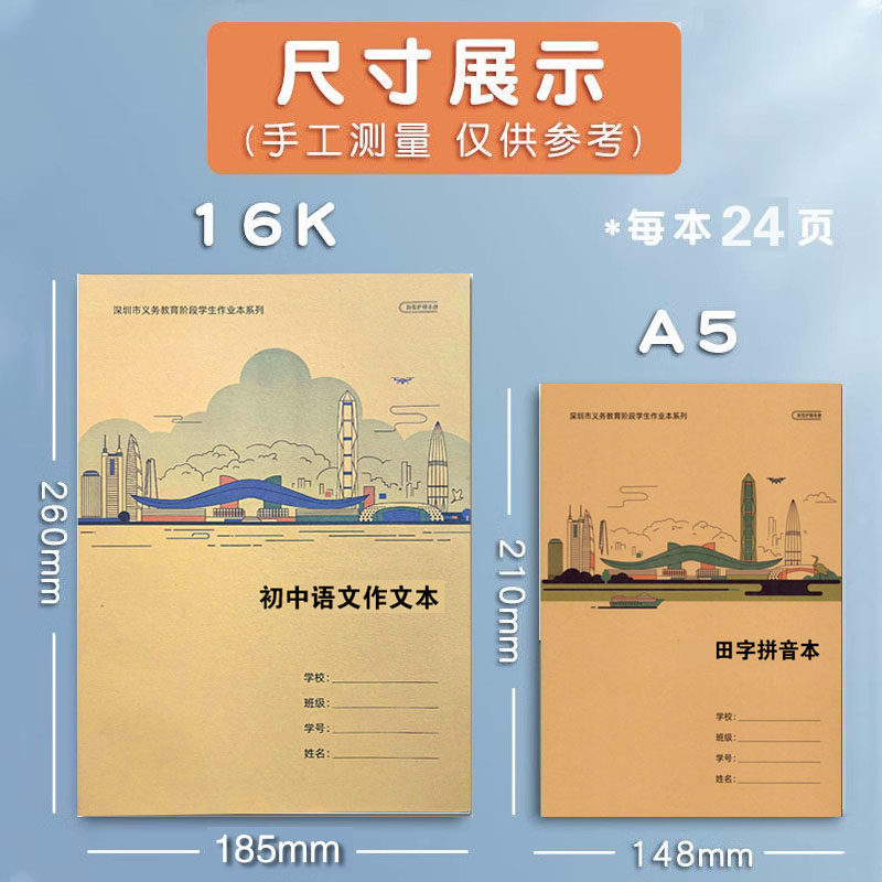 2026深圳市统一小学生牛皮封面A5 16K课作文本英语田字拼音作业本