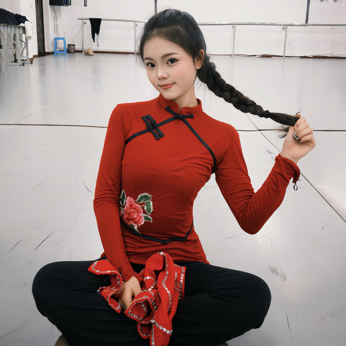 东北红色秧歌胶州舞蹈演出服女成人艺考舞台表演服上衣表演服饰